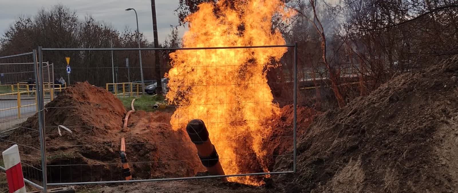Około południa podczas prac ziemnych doszło do rozszczelniania gazociągu i zapłonu wypływającego gazu.