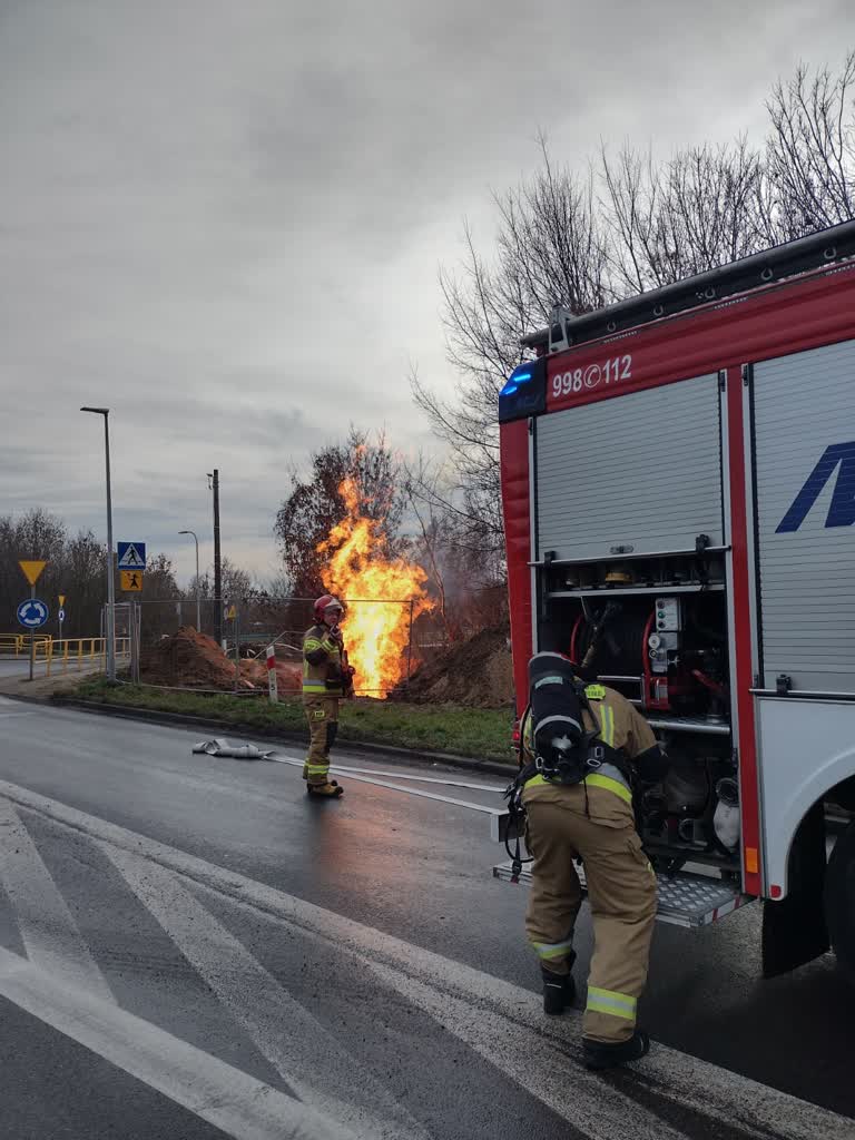 Zdjęcia: kpt. Konrad Majdak/https://www.gov.pl/web/kppsp-ostrowiec-swietokrzyski/pozar-gazociagu-w-miejscowosci-kunow