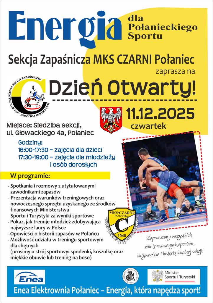 Sekcja Zapaśnicza MKS CZARNI Połaniec zaprasza na Dzień Otwarty!