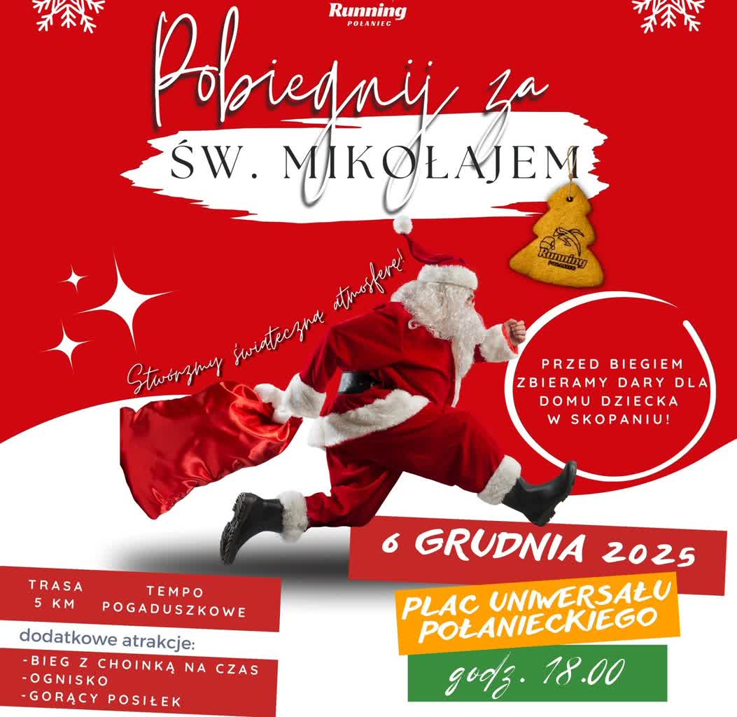 Po raz siódmy stowarzyszenie Running Połaniec organizuje wydarzenie zatytułowane „Pobiegnij za Świętym Mikołajem”. Odbędzie się ono w sobotę 6 grudnia na. Start i metę usytuowano na Placu Uniwersału Połanieckiego w Połańcu. Do pokonania będzie 5 kilometrowy dystans.