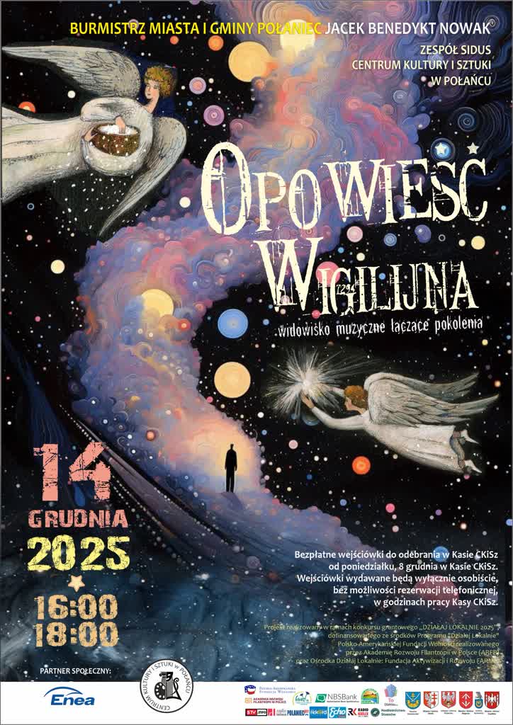 W tym roku zespół SIDUS wspierany przez Centrum Kultury i Sztuki w Połańcu przygotowuje widowisko muzyczne łączące pokolenia „OPOWIEŚĆ WIGILIJNA”, którego premiera zaplanowana została na 14 grudnia 2025r. Na scenie wystąpi ponad 50 młodych wykonawców, którzy zaśpiewają i zatańczą ze znaną wszystkim artystyczną energią. Inspiracją do powstania widowiska jest książka o takim samym tytule, która mówi o ważnych dla człowieka wartościach, takich jak empatia, miłosierdzie i znaczenie rodzinnych więzi. Będzie to historia o przemianie, przebaczeniu i miłości. Hasłem przewodnim spektaklu są cytaty z książki „ Nie ma na świecie nic tak nieodparcie zaraźliwego jak śmiech i dobry humor ”……„Bo czasem dobrze jest być dzieckiem, a nigdy lepiej niż w Boże Narodzenie, kiedy jego potężny Założyciel sam był dzieckiem”. Widowisko będzie przesłaniem dla wszystkich, apelem skierowanym do tych, którzy „żyjąc pełnią życia” zapominają o drugim człowieku. Będzie muzyczną podróżą, w którą Zespół SIDUS zabierze wszystkich, by pokazać jak dużą wartość niosą ze sobą święta spędzone wspólnie razem. W podróży odkryjemy co tak naprawdę liczy się w życiu. Wniesiemy świąteczną magię do każdego serca i każdego domu, przypominając, że święta to czas refleksji i dobra.