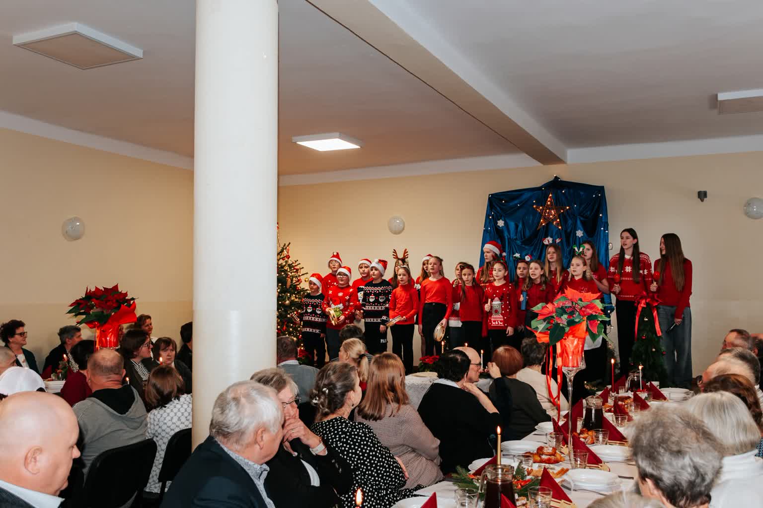 Nie zabrakło wspólnego kolędowania i rozmów. Uczestnicy symbolicznie przełamali się opłatkiem i zasiedli do stołów pełnych tradycyjnych wigilijnych potraw przygotowanych przez Koło Gospodyń Wiejskich z Chobrzan.
