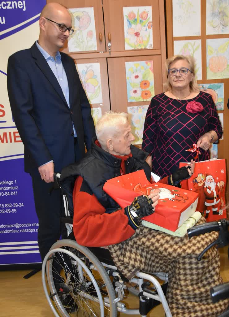 To kolejna mikołajkowa niespodzianka dla mieszkańców sandomierskiego DPS-u. W minionym tygodniu odwiedził ich z prezentami wojewoda świętokrzyski Józef Bryk a towarzyszył mu starosta Marcin Piwnik, wicestarosta Grażyna Szklarska oraz burmistrz Paweł Niedźwiedź. Mieszkańcy DPS-u otrzymali także prezenty w ramach akcji „Paczka dla Seniora” organizowanej przez Stowarzyszenie Przyjaciół Osób Niepełnosprawnych „Uśmiech Seniora”, które działa przy Domu Pomocy Społecznej w Sandomierzu i Starostwo Powiatowe w Sandomierzu.