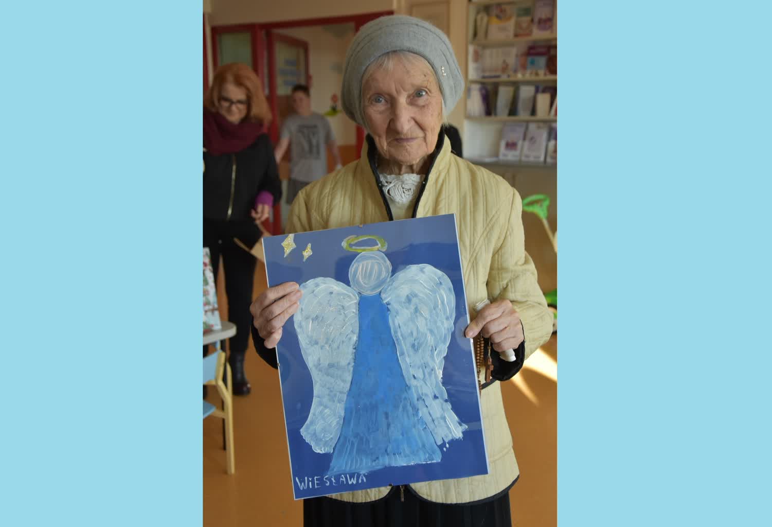 W czasie wizyty przekazano ręcznie wykonane prace artystyczne przygotowane podczas spotkań w ramach projektu „Artystyczny dialog pokoleń”, którego organizatorem była Fundacja Kultury Ziemi Sandomierskiej.