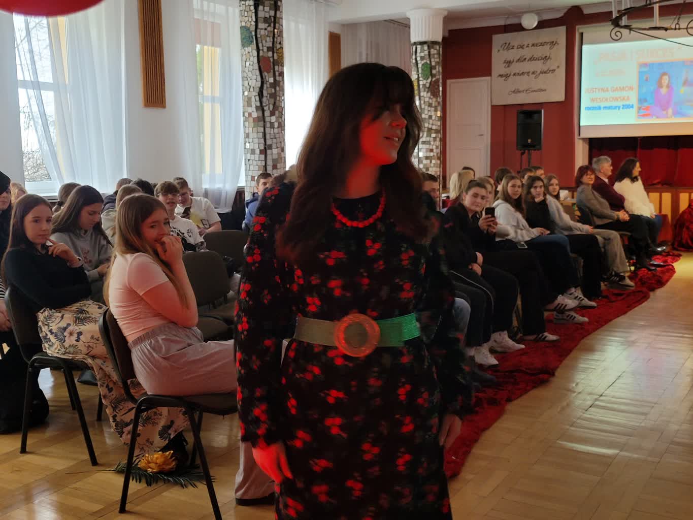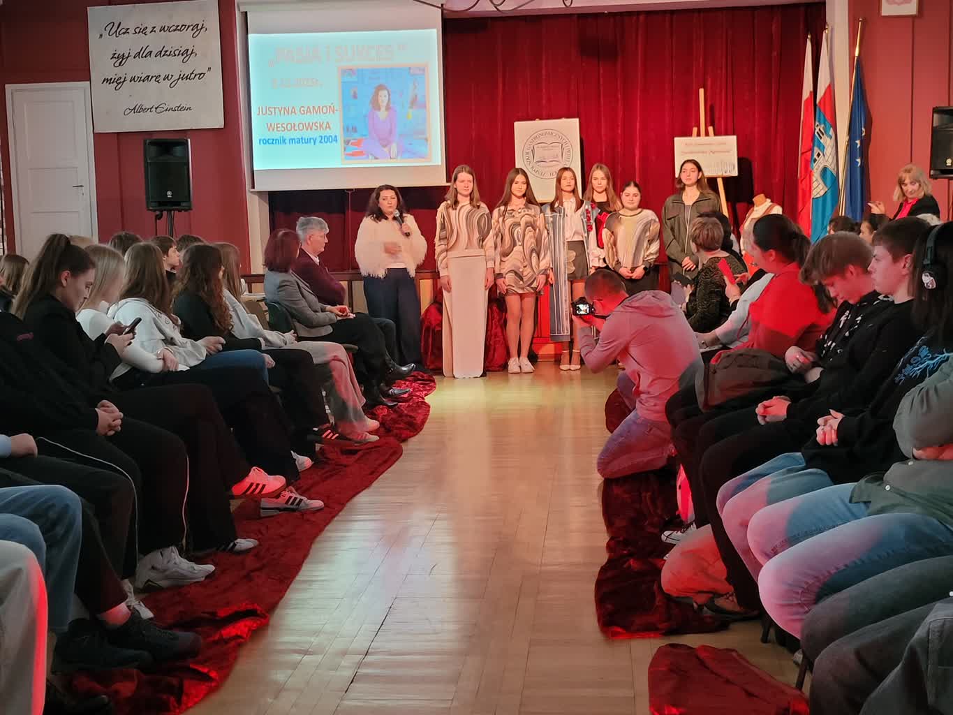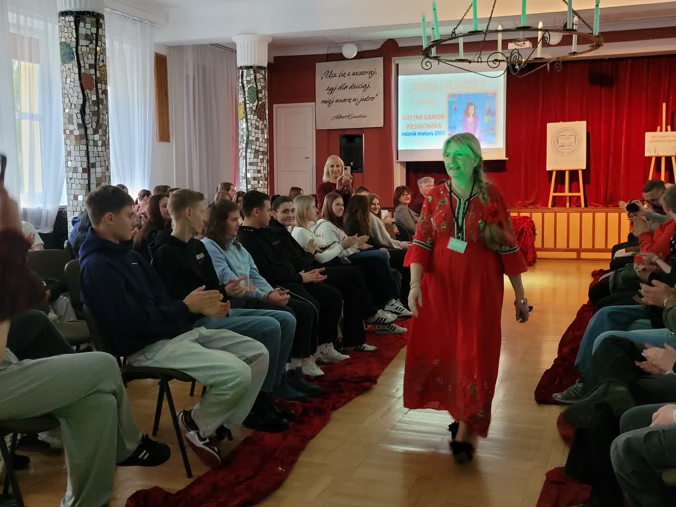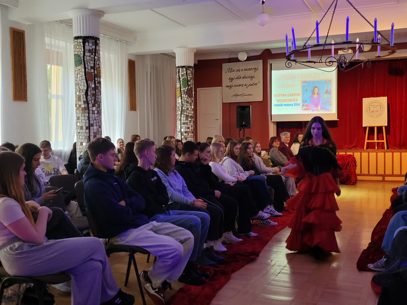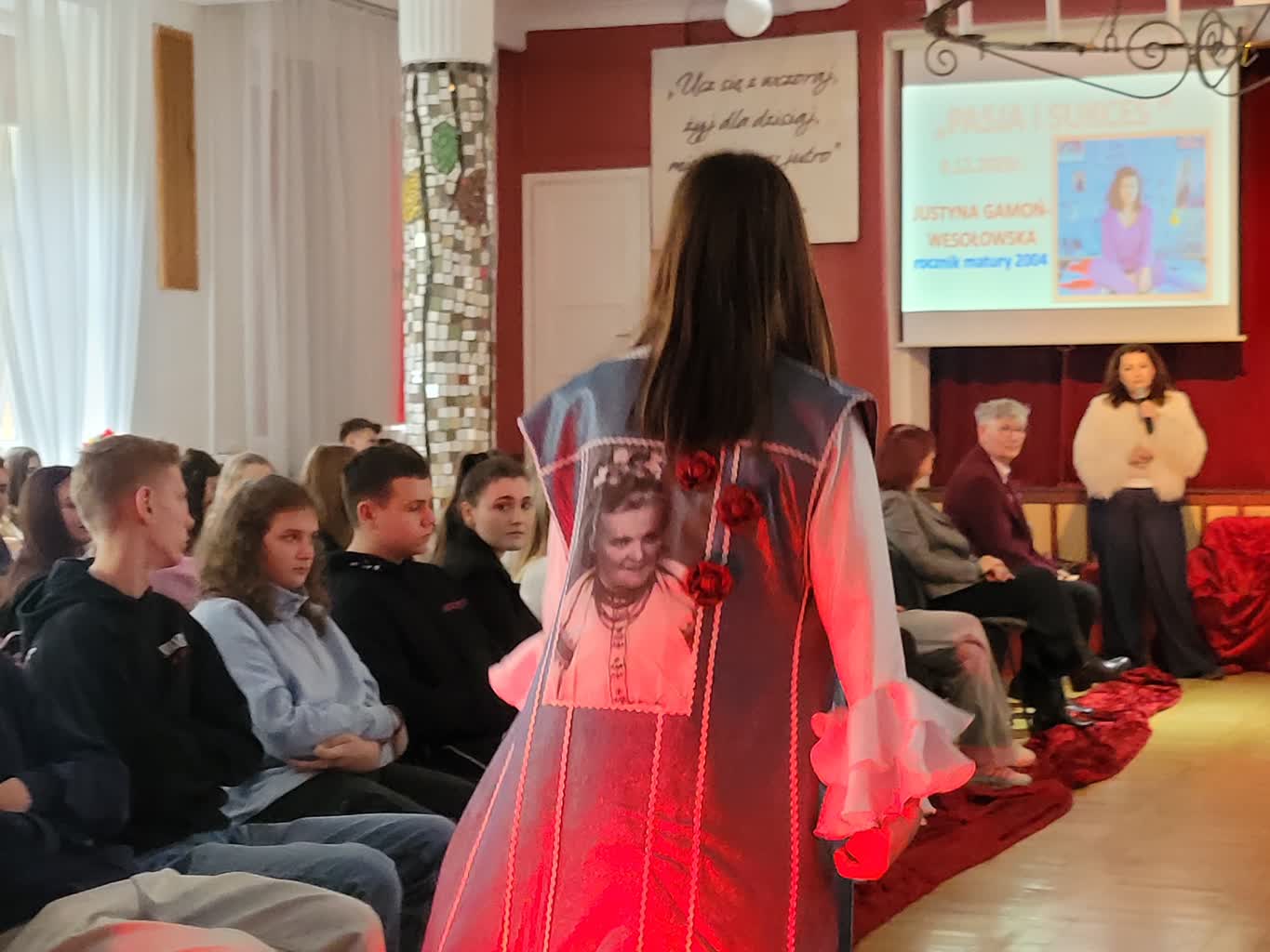 Niespodzianką przygotowaną dla Justyny Gamoń-Wesołowskiej była obecność na spotkaniu emerytowanych nauczycieli, którzy ją uczyli, oraz specjalny pokaz mody, w którym wzięli udział uczniowie i nauczyciele.