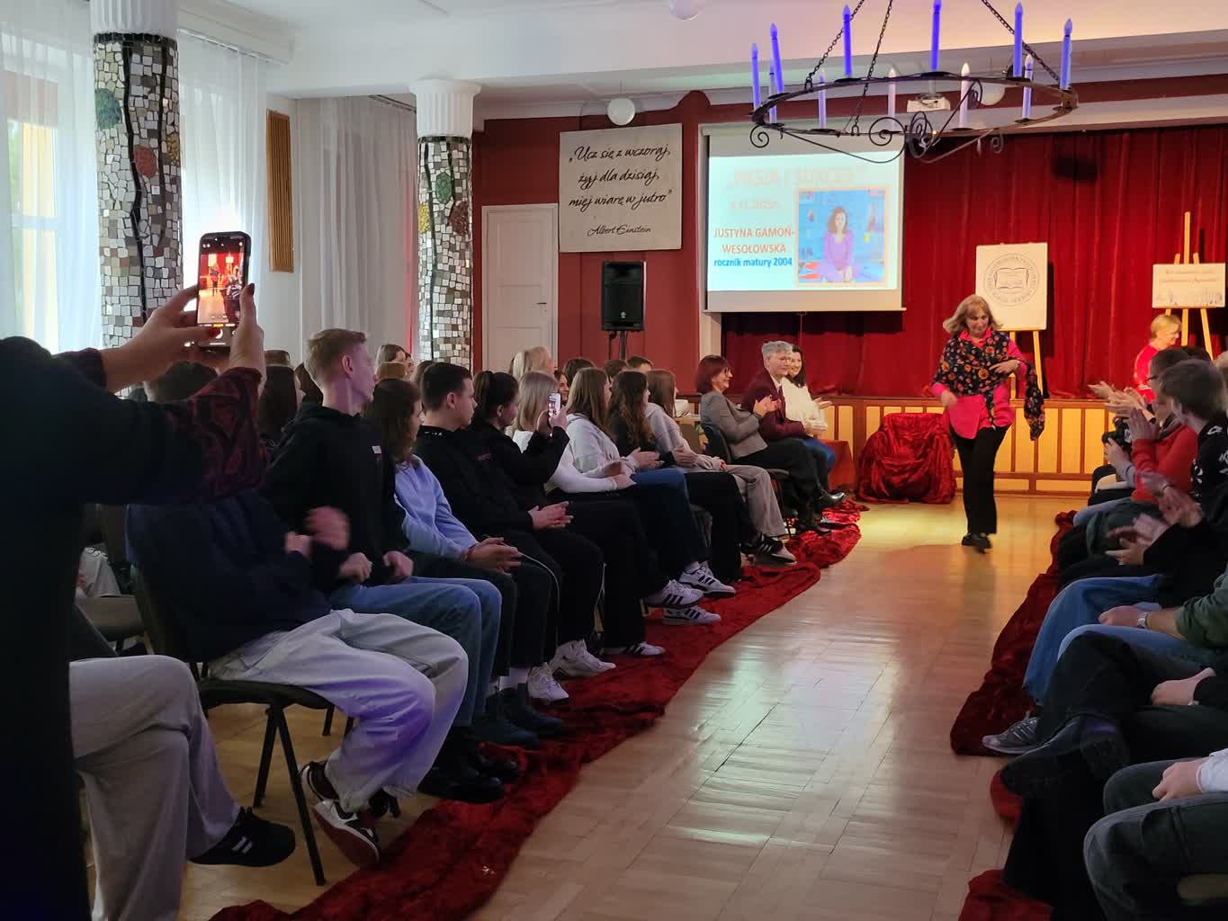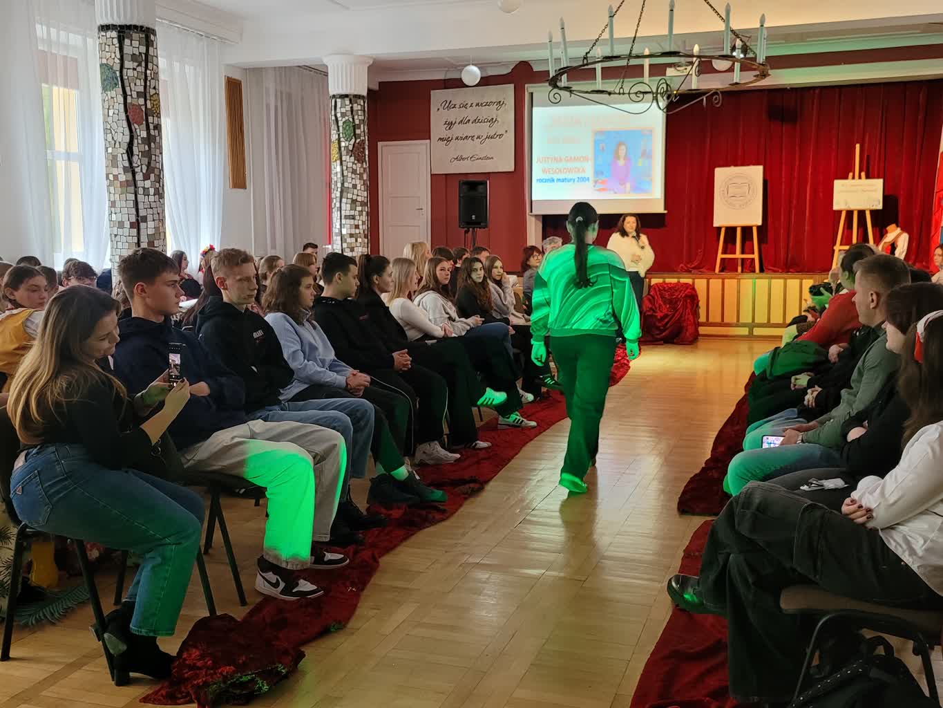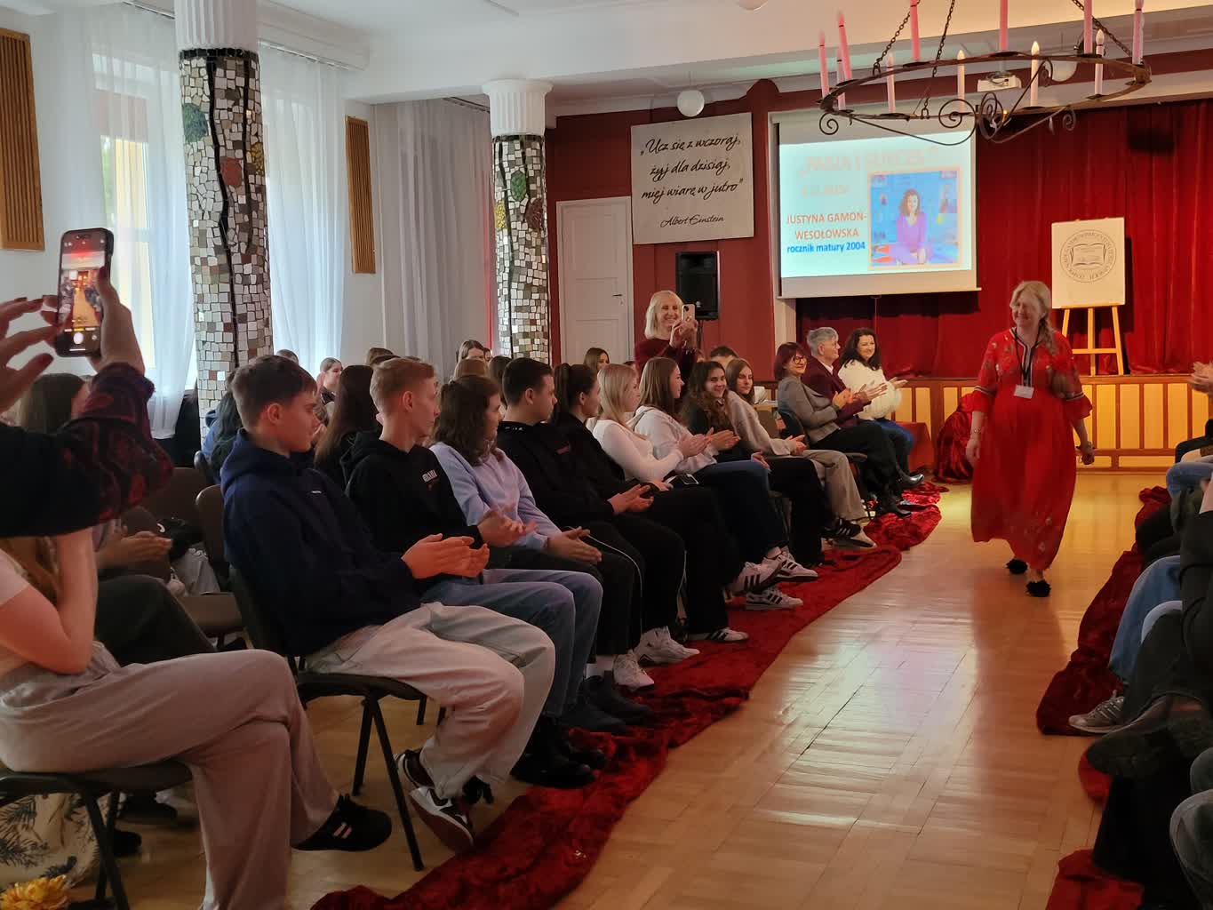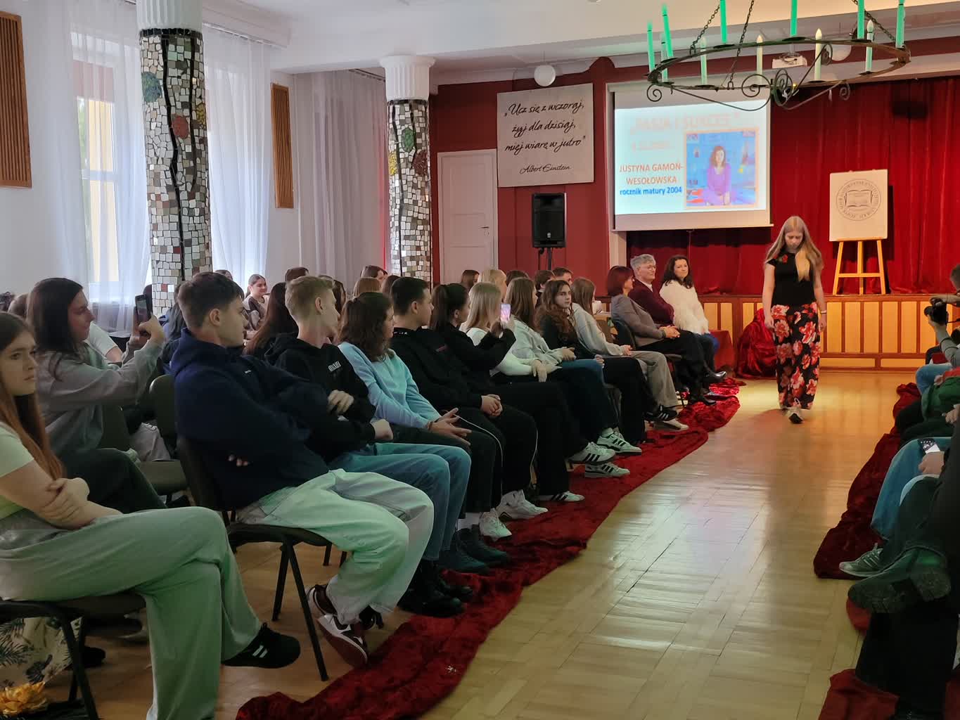 Niespodzianką przygotowaną dla Justyny Gamoń-Wesołowskiej była obecność na spotkaniu emerytowanych nauczycieli, którzy ją uczyli, oraz specjalny pokaz mody, w którym wzięli udział uczniowie i nauczyciele.