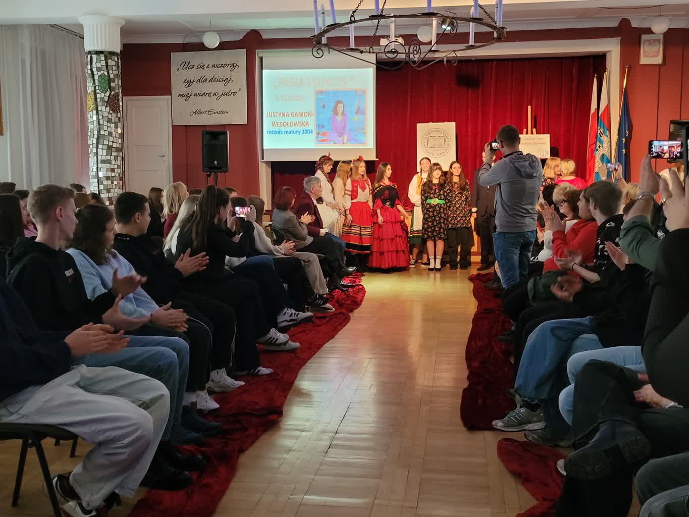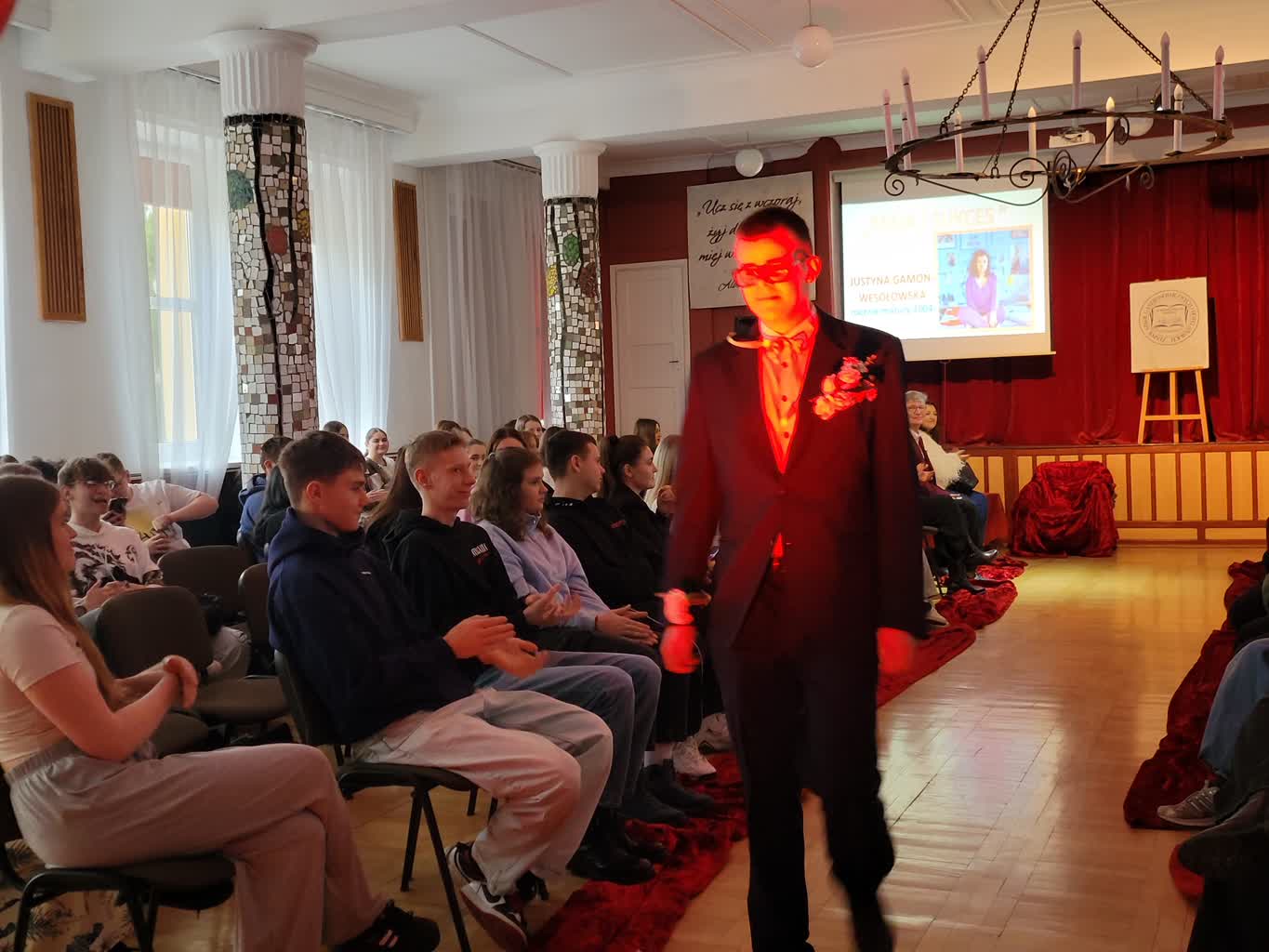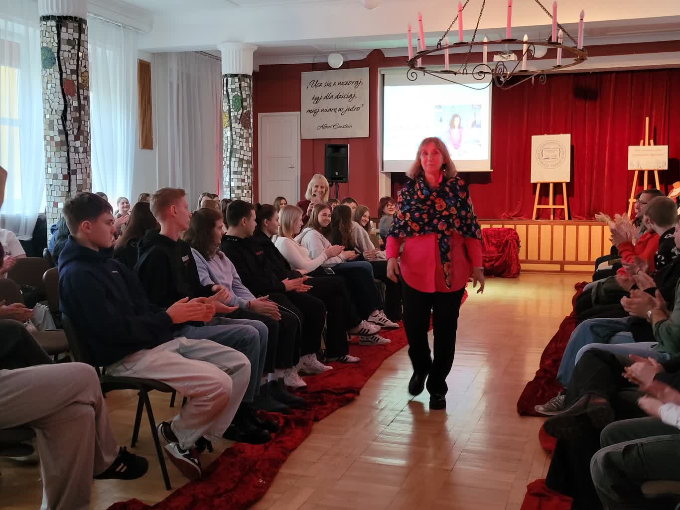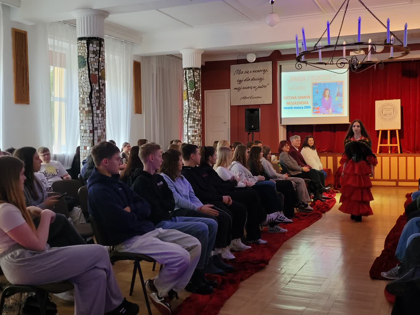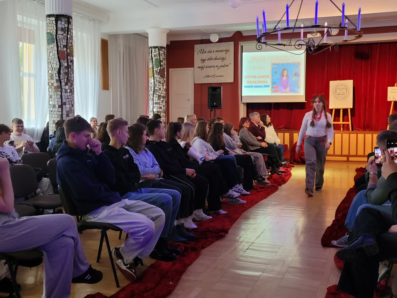 Niespodzianką przygotowaną dla Justyny Gamoń-Wesołowskiej była obecność na spotkaniu emerytowanych nauczycieli, którzy ją uczyli, oraz specjalny pokaz mody, w którym wzięli udział uczniowie i nauczyciele.