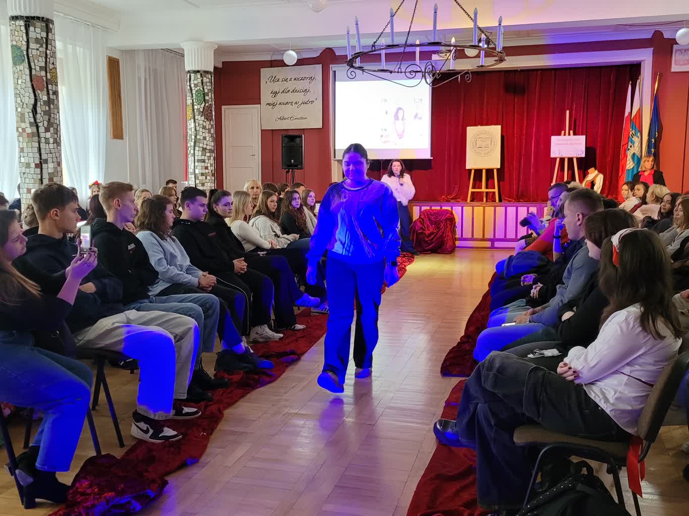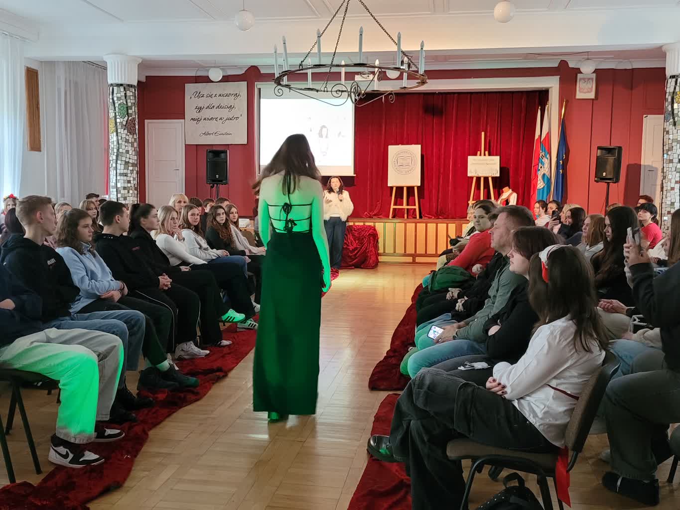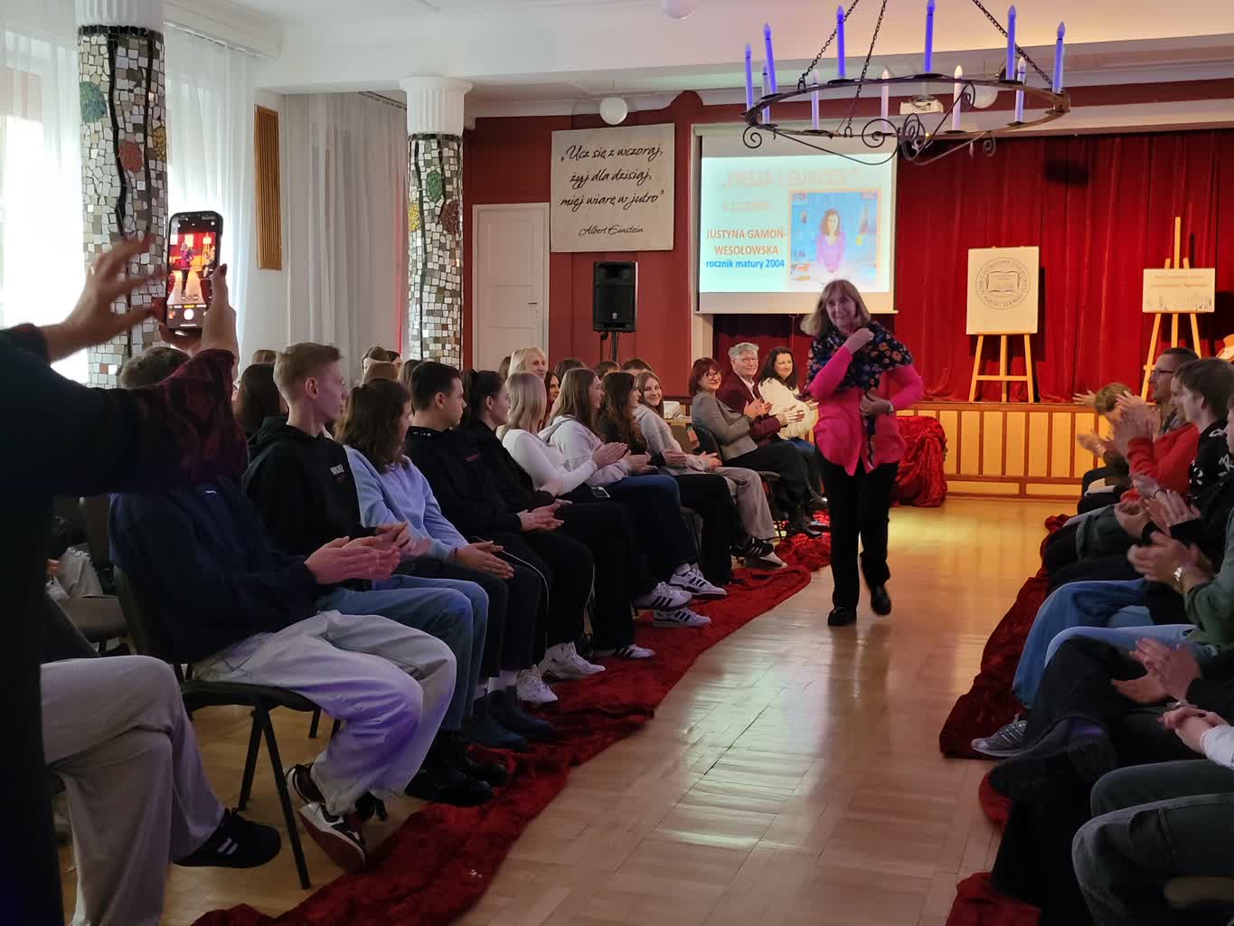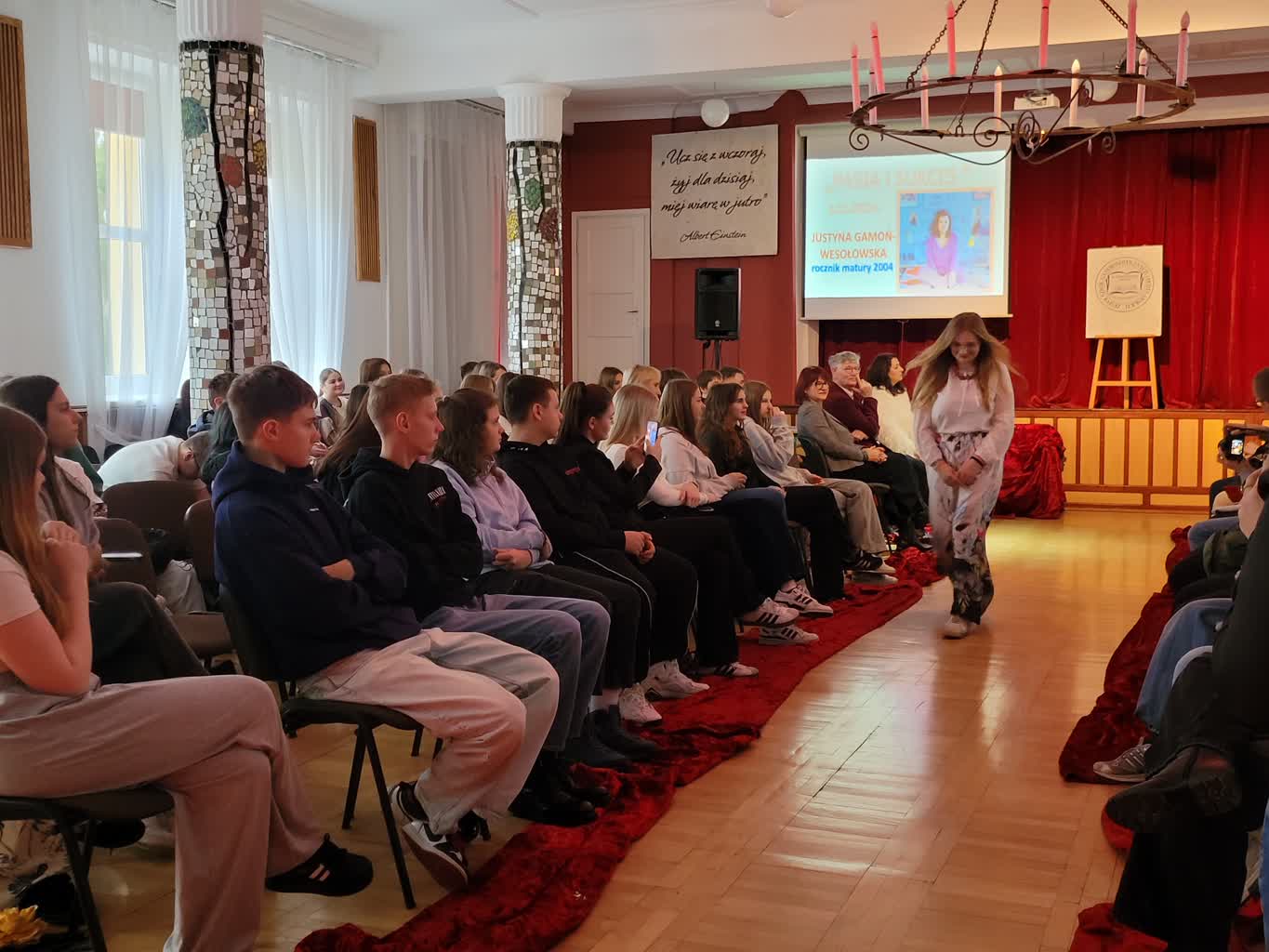 Niespodzianką przygotowaną dla Justyny Gamoń-Wesołowskiej była obecność na spotkaniu emerytowanych nauczycieli, którzy ją uczyli, oraz specjalny pokaz mody, w którym wzięli udział uczniowie i nauczyciele.