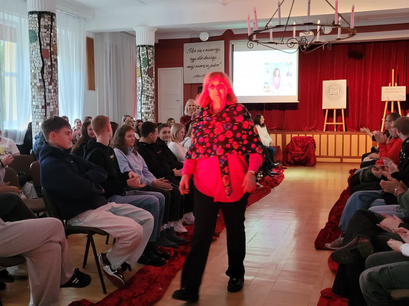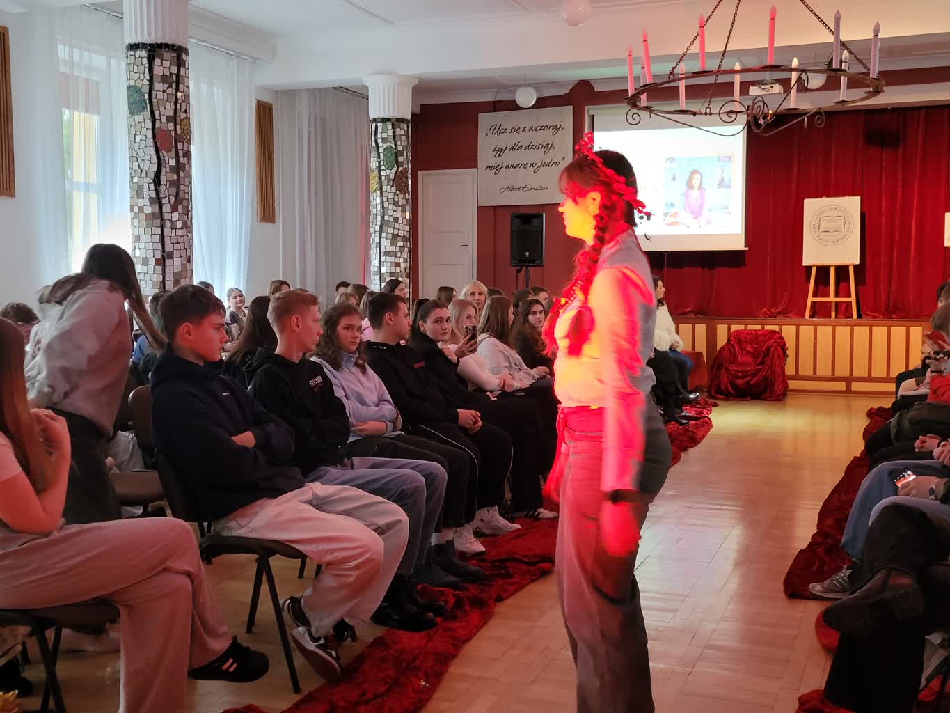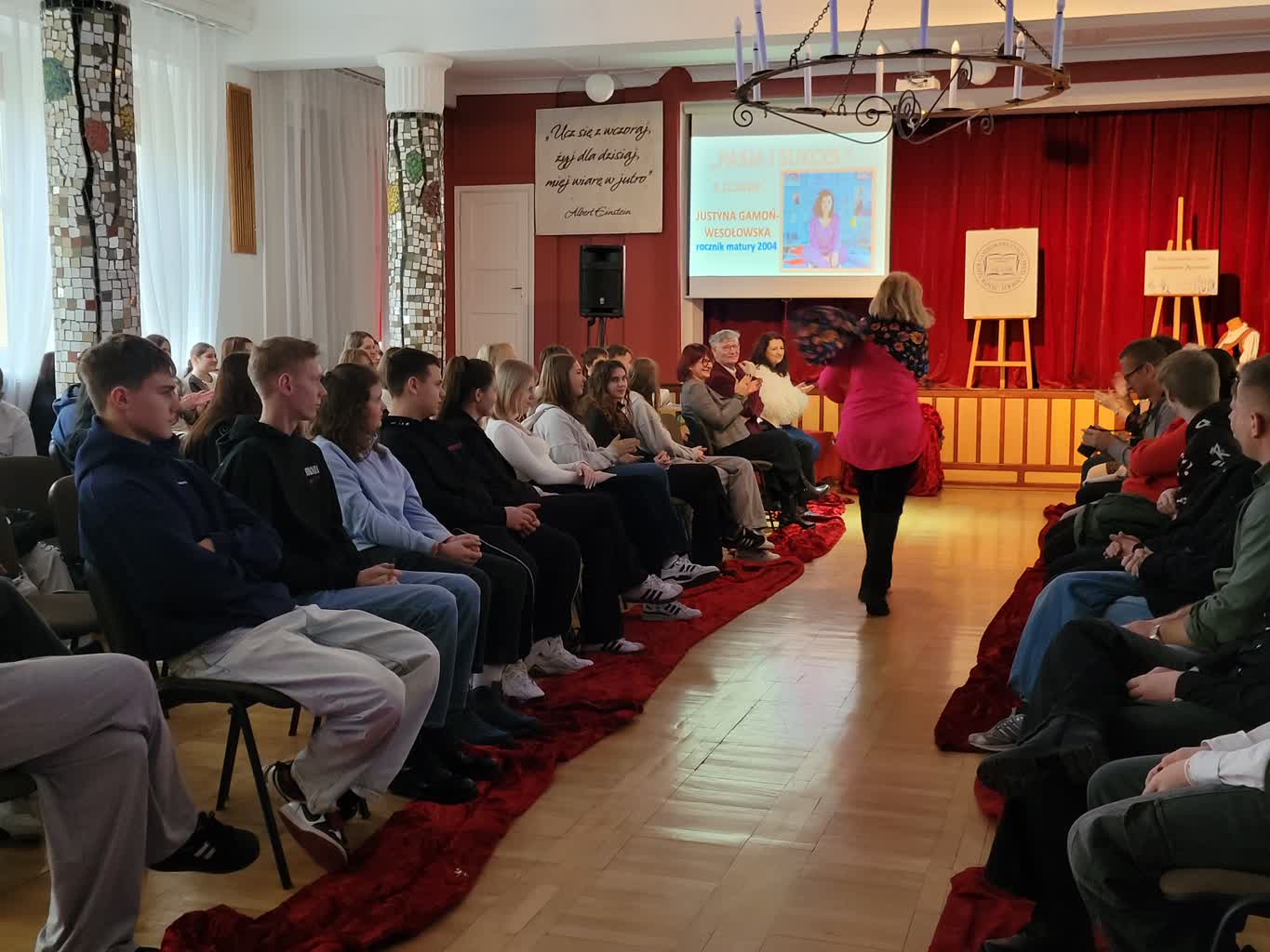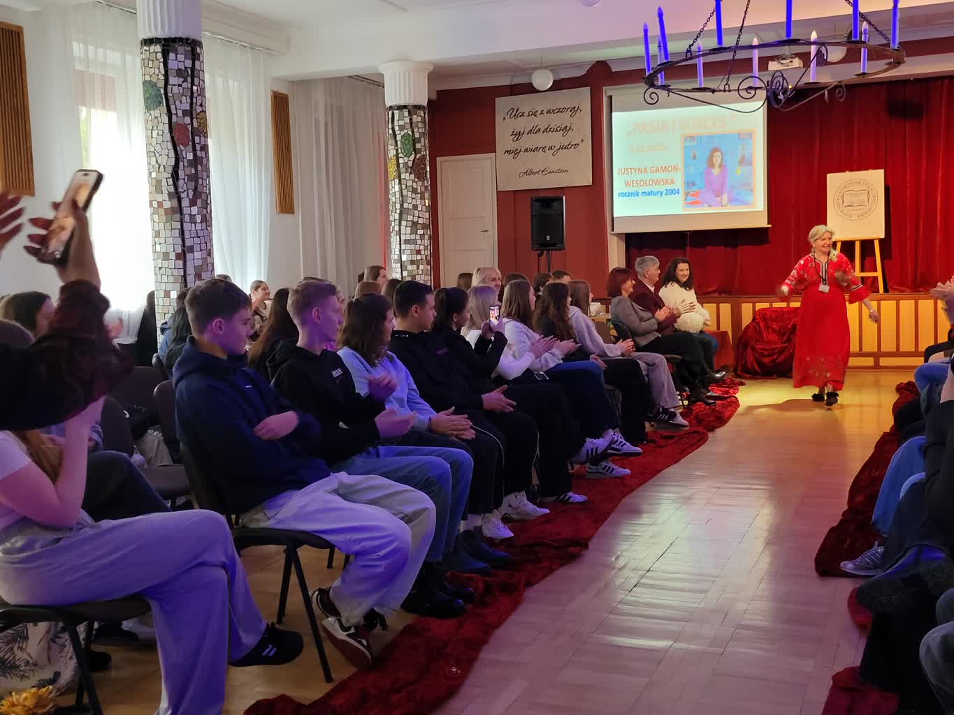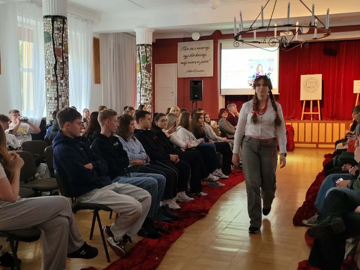 Niespodzianką przygotowaną dla Justyny Gamoń-Wesołowskiej była obecność na spotkaniu emerytowanych nauczycieli, którzy ją uczyli, oraz specjalny pokaz mody, w którym wzięli udział uczniowie i nauczyciele.
