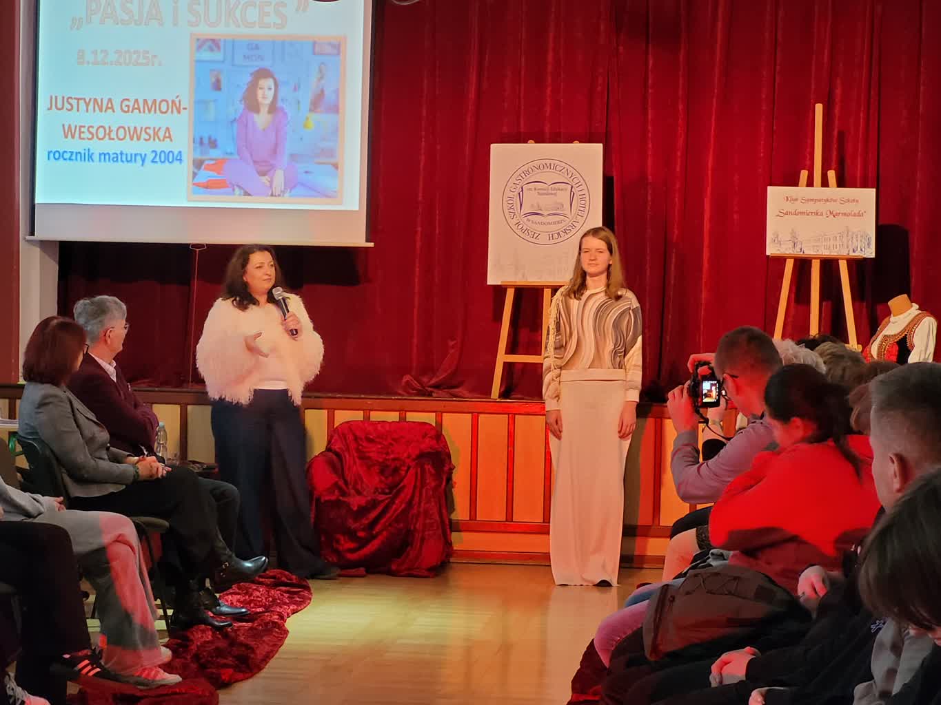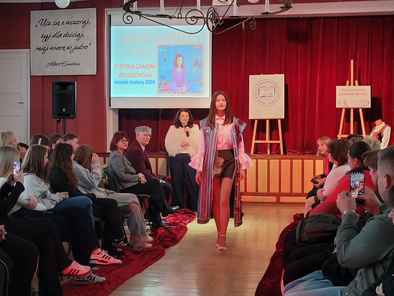 Projektantka ubioru i stylistka mody Justyna Gamoń-Wesołowska była gościem spotkania z cyklu „Pasja i sukces”, jakie odbyło się w Zespole Szkól Gastronomicznych i Hotelarskich w Sandomierzu.