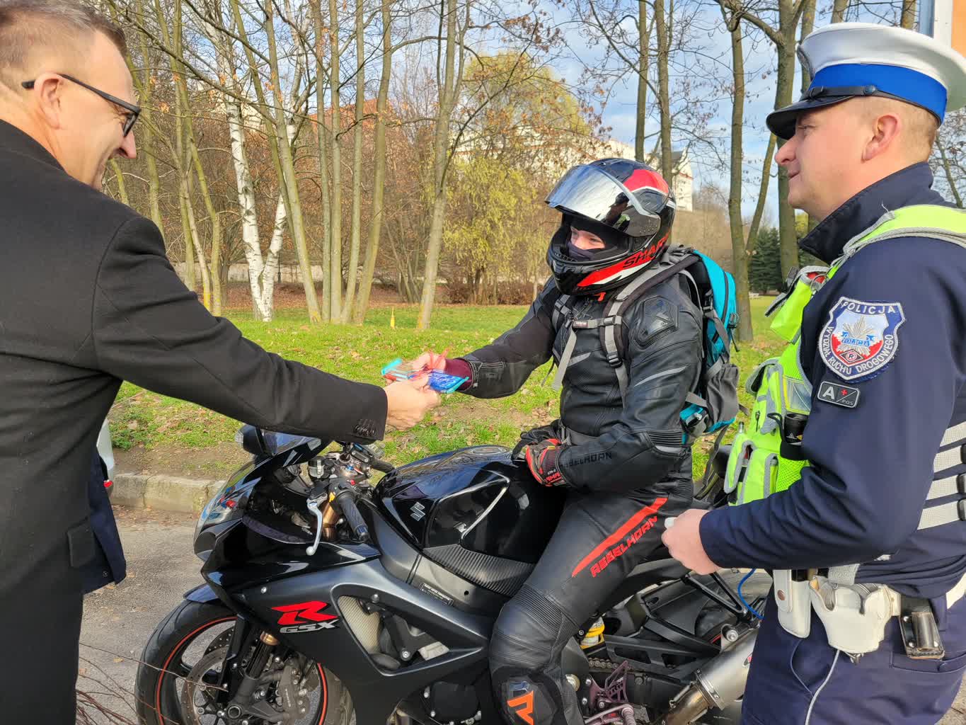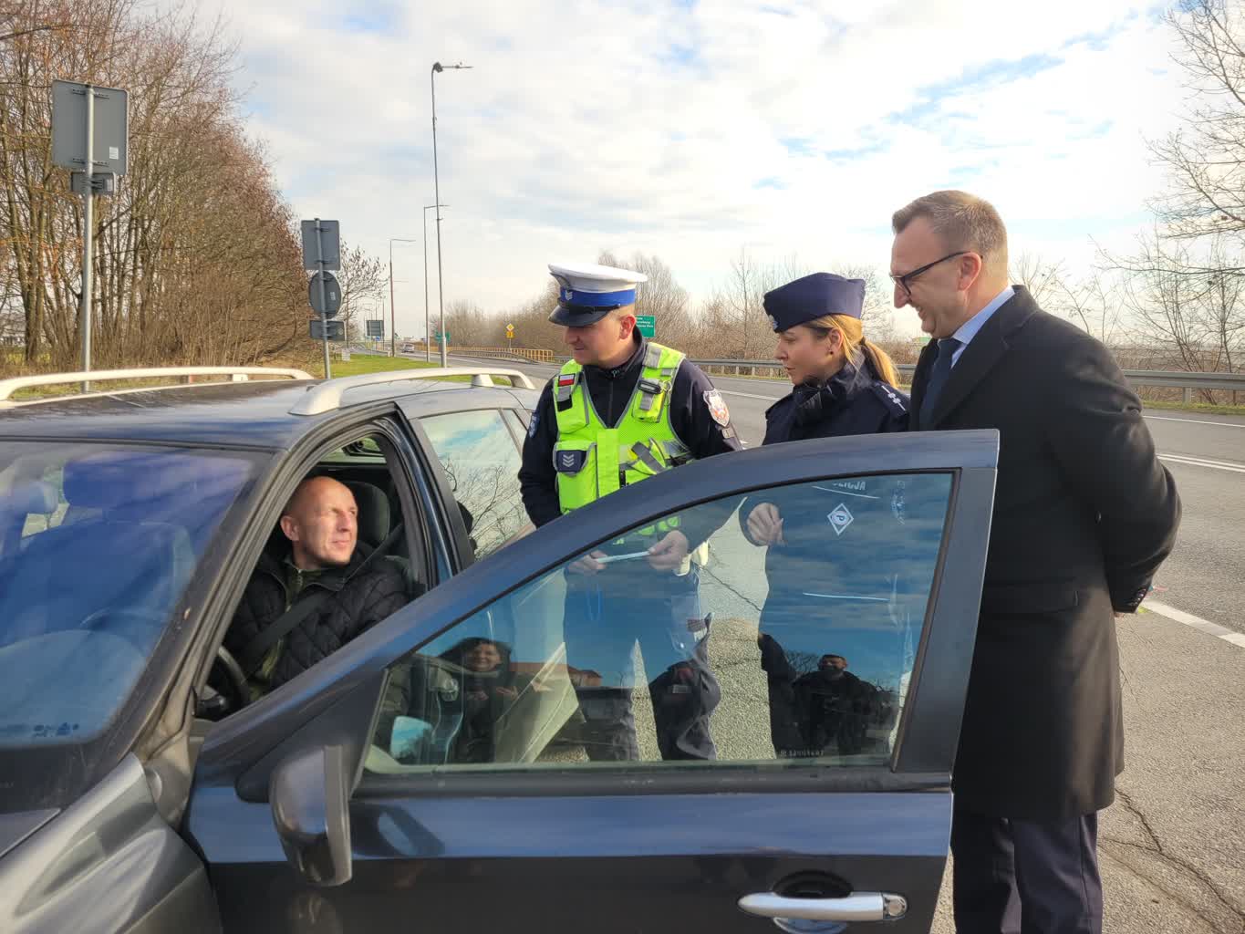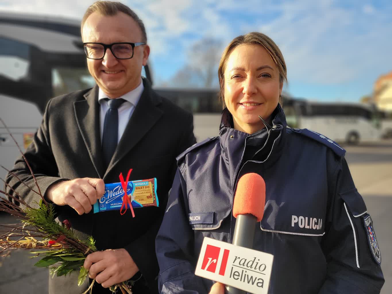 Czekoladę lub rózgę wręczał starosta sandomierski Marcin Piwnik, który towarzyszył policyjnemu patrolowi: