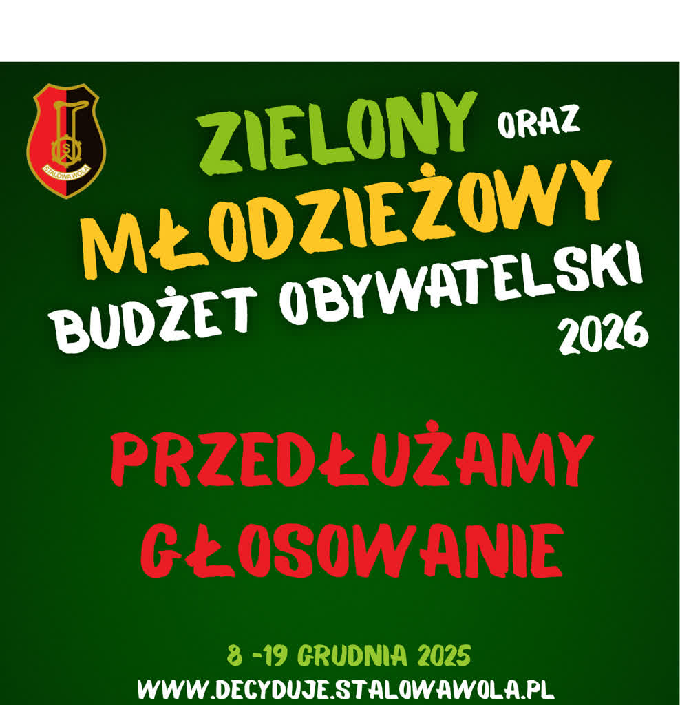 Do piątku(19.12) można jeszcze głosować na projekty do przyszłorocznego Młodzieżowego i Zielonego Budżetu Obywatelskiego w Stalowej Woli. Głosowanie zostało przedłużone o dwa dni.