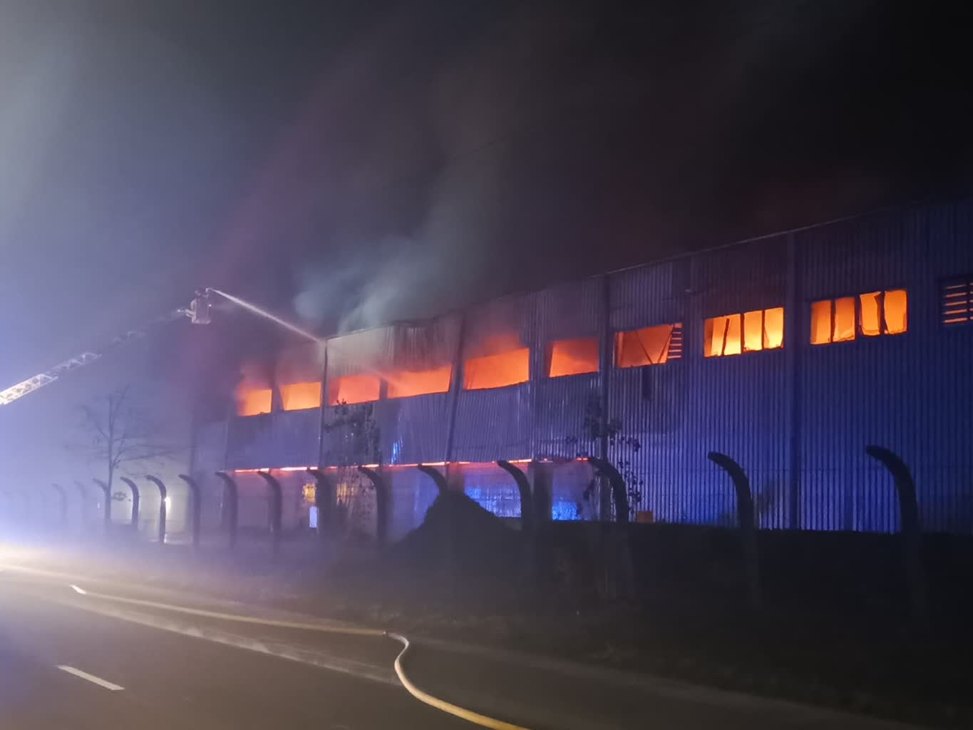 Pożar został zlokalizowany, ale nadal trwa dogaszanie hali. To potrwa jeszcze co najmniej kilka godzin, bo nadal działania gaśnicze prowadzone są z zewnątrz obiektu.