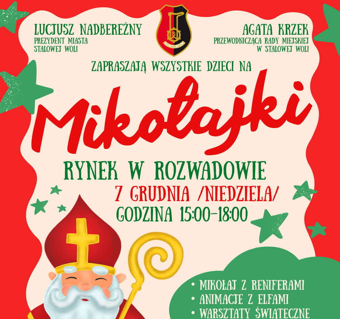 Wyjątkowo mikołajkowo będzie w niedzielę, 7 grudnia, w Stalowej Woli. Po wizycie Moto Mikołajów o15.00 na Rynku w Rozwadowie ruszają Mikołajki. Nie zabraknie mikołaja z reniferami, warsztatów i animacji oraz świątecznych poczęstunków.