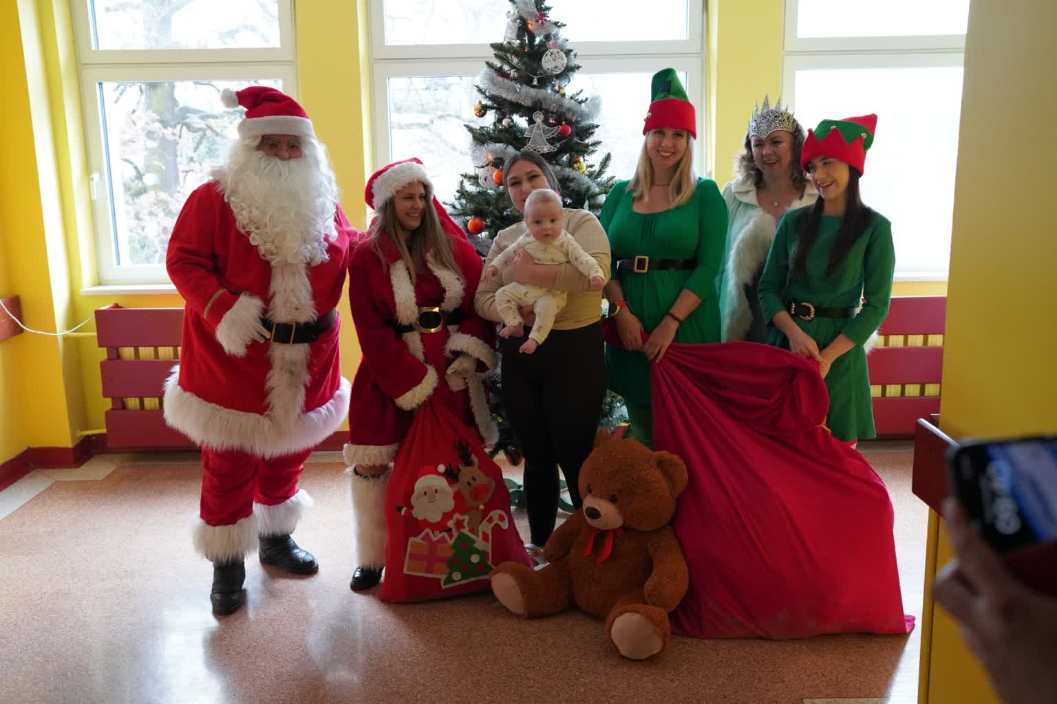W tym roku Brygada Świętego Mikołaja była liczniejsza niż w latach ubiegłych. Do Mikołaja i Śnieżynki dołączyły dwa Elfy oraz Pani Mikołajowa. W te role wcielili się wolontariusze, dzięki którym na szpitalnych korytarzach zrobiło się jeszcze bardziej kolorowo i radośnie.
