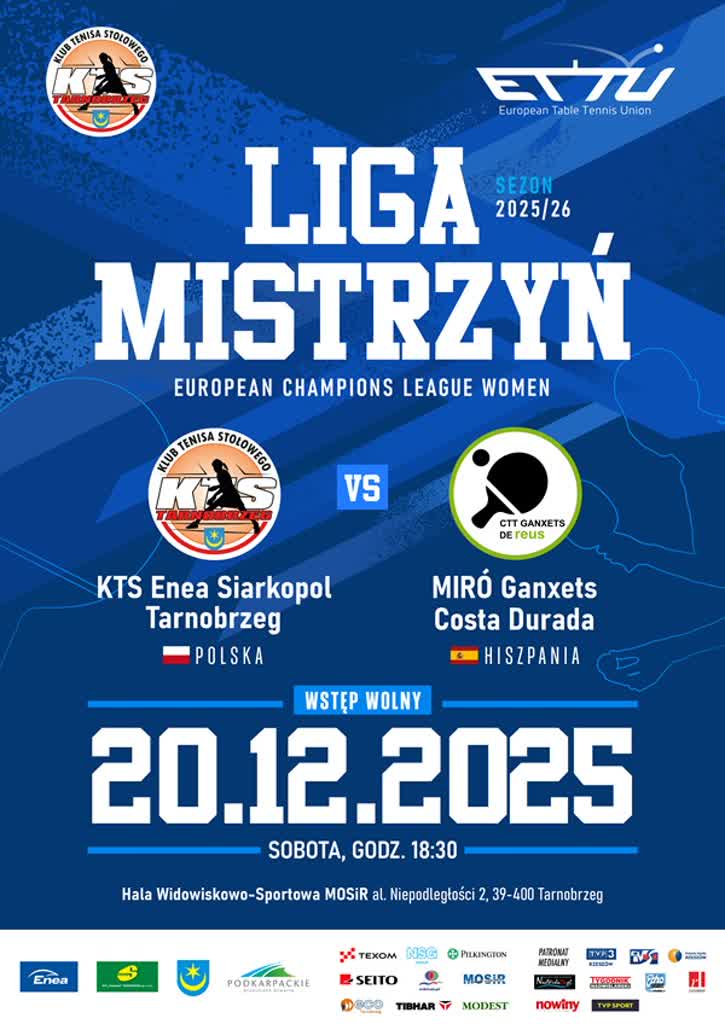 W sobotę, 20 grudnia KTS Enea Siarkopol Tarnobrzeg rozegra kolejne spotkanie w ramach Europejskiej Ligi Mistrzyń w tenisie stołowym.