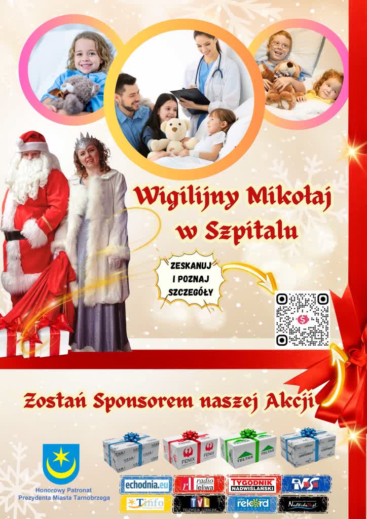 W Tarnobrzegu po raz trzeci odbędzie się wyjątkowa akcja charytatywna pod nazwą „Wigilijny Mikołaj w Szpitalu”. Wydarzenie zaplanowano na 24 grudnia, czyli w Wigilię. Tego dnia Wojewódzki Szpital im. Zofii z Zamoyskich Tarnowskiej w Tarnobrzegu odwiedzi Święty Mikołaj w towarzystwie bajkowych postaci oraz wolontariuszy.