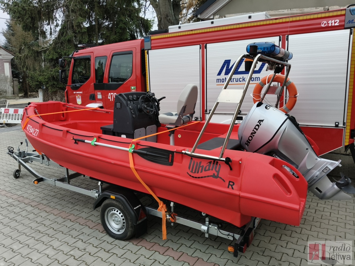 Łódź płaskodenną z silnikiem zaburtowym otrzymała OSP Zawichost. – Jesteśmy w gminie nadwiślańskiej, więc ta łódź znacząco wzmocni ewentualne działania na wodzie – mówi prezes jednostki Anna Mazur.