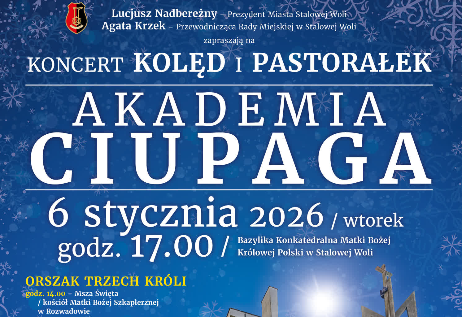 Ulicami Stalowej Woli tradycyjnie 6 stycznia przejdzie Orszak Trzech Króli. Tym razem swój początek będzie miał w Rozwadowie a finałem będzie koncert kolęd w Konkatedrze w wykonaniu Akademii Ciupaga.