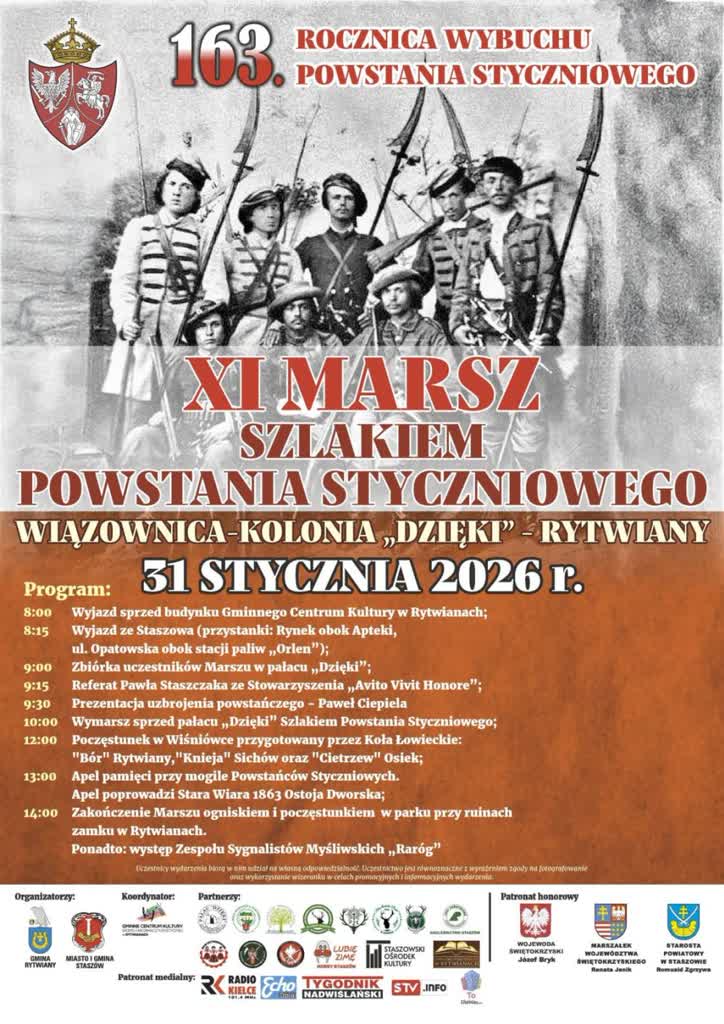W sobotę 31 stycznia odbędzie się wydarzenie, które łączy historię, pamięć o bohaterach i zimową integrację czyli Xi Marsz Szlakiem Powstania Styczniowego na trasie Wiązownica Kolonia „Dzięki” – Rytwiany.