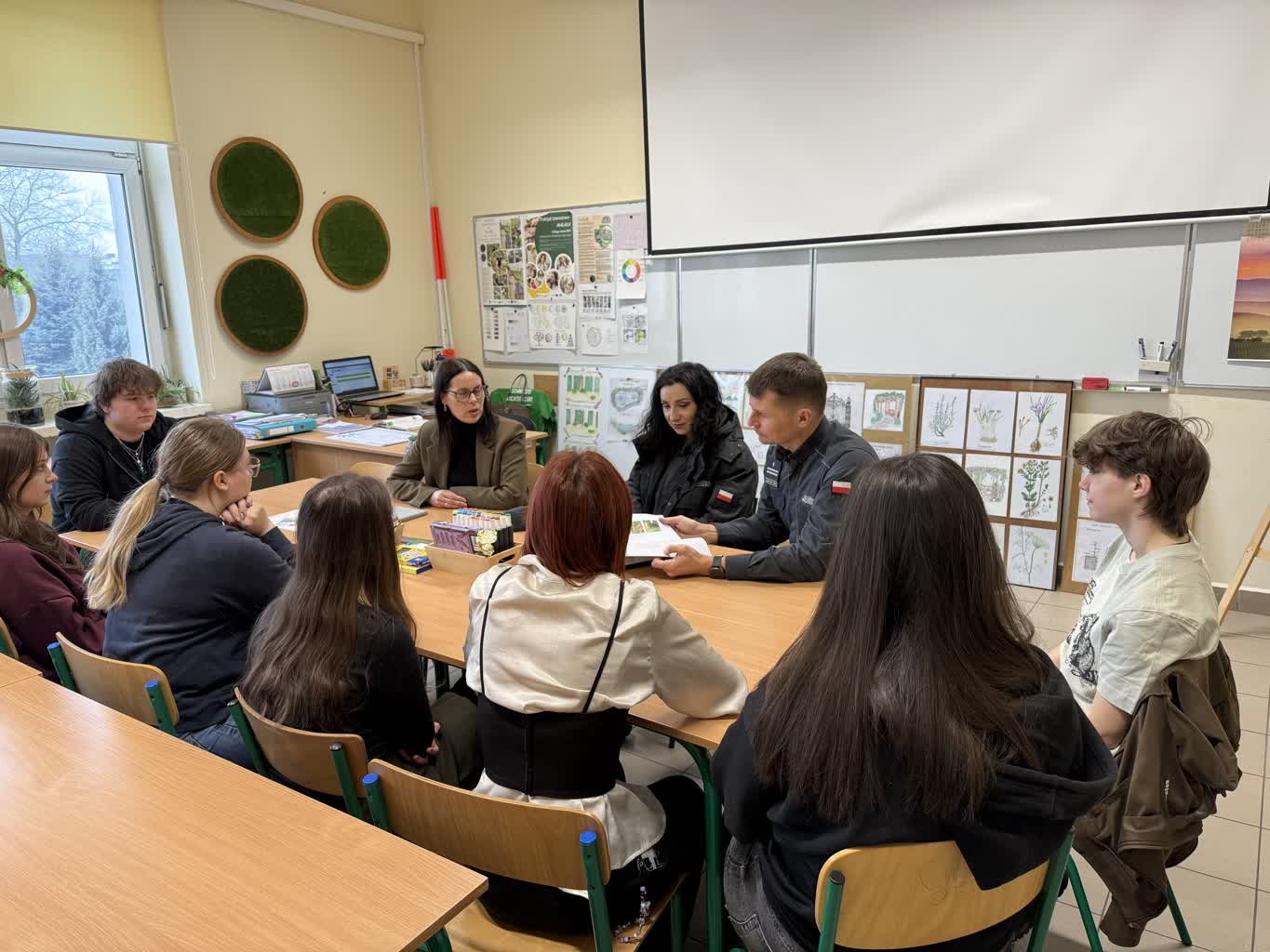W szkole odbyło się spotkanie młodzieży z przedstawicielami Domu Przejściowego dla Kobiet w Chmielowie. Uczniowie zaprezentowali tam swoje koncepcje oraz wizualizacje zagospodarowania części użytkowej i rekreacyjnej terenu wokół placówki. Współpraca rozpoczęła się jeszcze w czerwcu. To wtedy przyszli architekci krajobrazu zostali zaproszeni do wspólnego tworzenia projektu i otrzymali szczegółowe wytyczne dotyczące potrzeb miejsca. Równolegle odbyły się zajęcia terenowe – była wizja lokalna, dokumentacja fotograficzna oraz analiza map i materiałów geodezyjnych. Wszystko po to, by jak najlepiej poznać teren i zaproponować funkcjonalne, przemyślane rozwiązania.