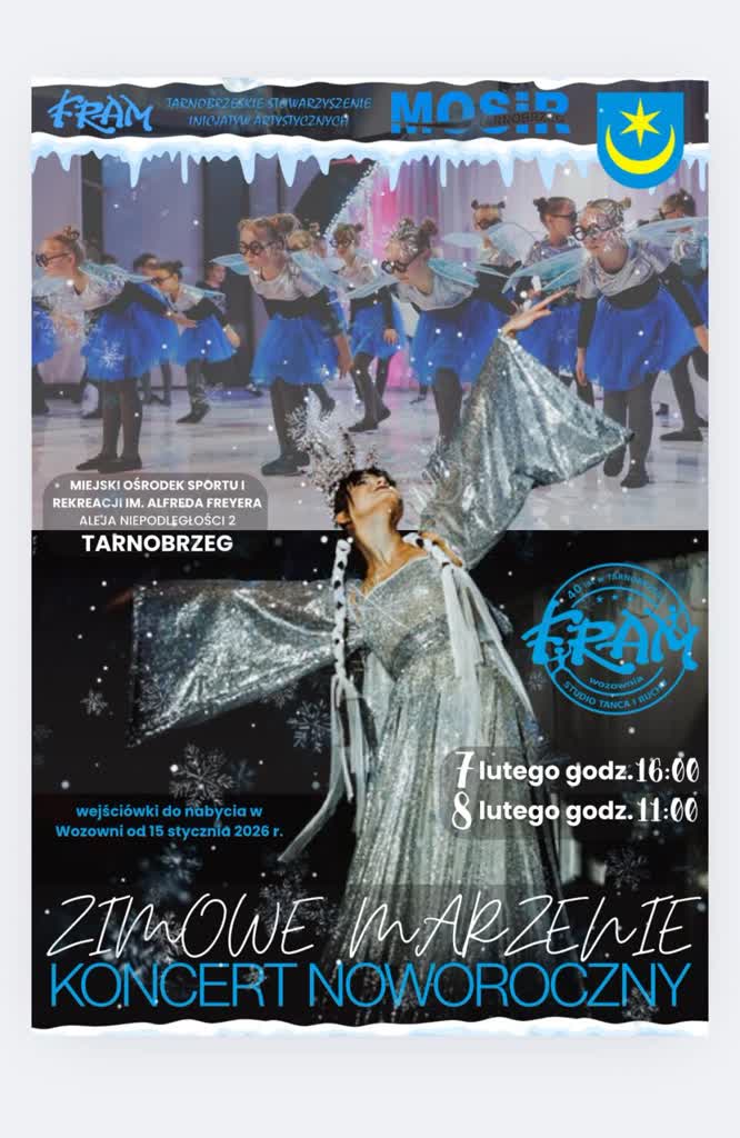 Studio Tańca i Ruchu FRAM zaprasza na koncert noworoczny „Zimowe Marzenie”, podczas którego na jednej scenie wystąpią między innymi wszyscy tancerze studia, prezentując energetyczne choreografie.
