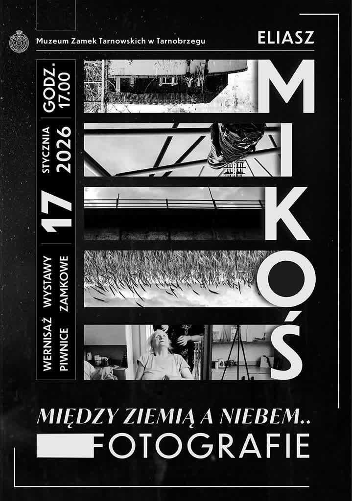 Muzeum-Zamek Tarnowskich w Tarnobrzegu zaprasza na wystawę fotografii Eliasza Mikosia pod tytułem „Między ziemią a niebem”. To cykl czarno-białych zdjęć ukazujących codzienność miasta i jego obrzeży, zatrzymane w chwilach ciszy, refleksji i zawieszenia. Autorem prac jest Eliasz Mikoś, fotografik urodzony w Krośnie, absolwent Uniwersytetu Rzeszowskiego, który od lat traktuje fotografię jako narzędzie malarskie, oparte na symbolu i niedopowiedzeniu.
