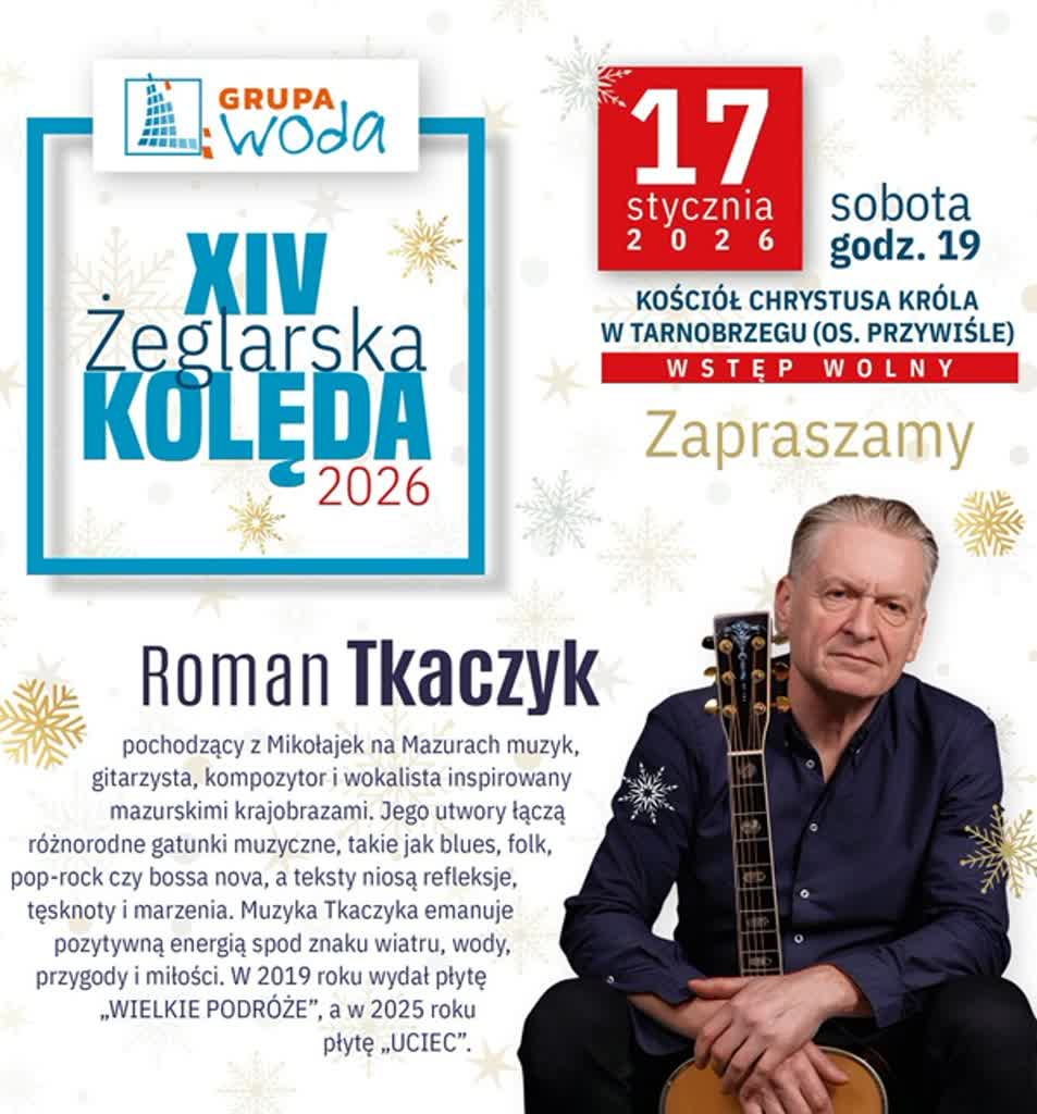 Roman Tkaczyk, muzyk, gitarzysta, kompozytor i wokalista wystąpi podczas XIV edycji Żeglarskiej Kolędy w Tarnobrzegu. Artysta zagra i zaśpiewa w najbliższą sobotę, 17 stycznia, o godzinie 19.00 w kościele pod wezwaniem Chrystusa Króla na osiedlu Przywiśle.