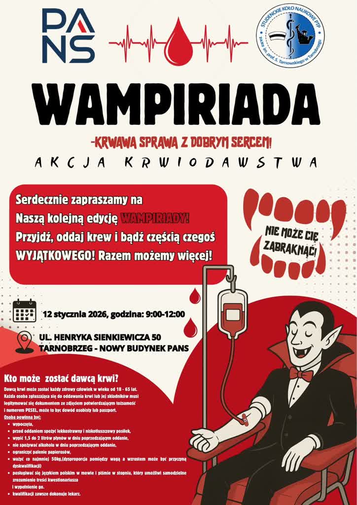 Zbliża się czwarta edycja Wampiriady w Państwowa Akademia Nauk Stosowanych w Tarnobrzegu – czas znów połączyć siły!