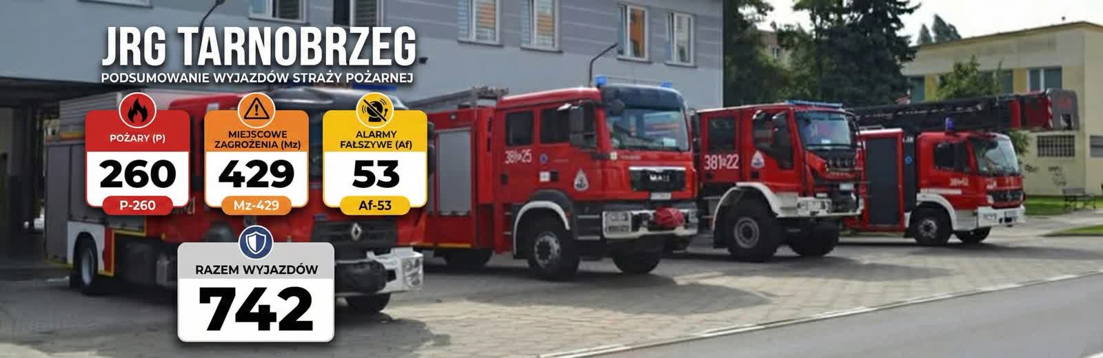 Najbardziej zapracowana była Jednostka Ratowniczo-Gaśnicza w Tarnobrzegu, która odnotowała 742 wyjazdy. Zdecydowaną większość stanowiły miejscowe zagrożenia, takie jak wypadki czy usuwanie skutków wichur. Było też 260 pożarów oraz 53 fałszywe alarmy.