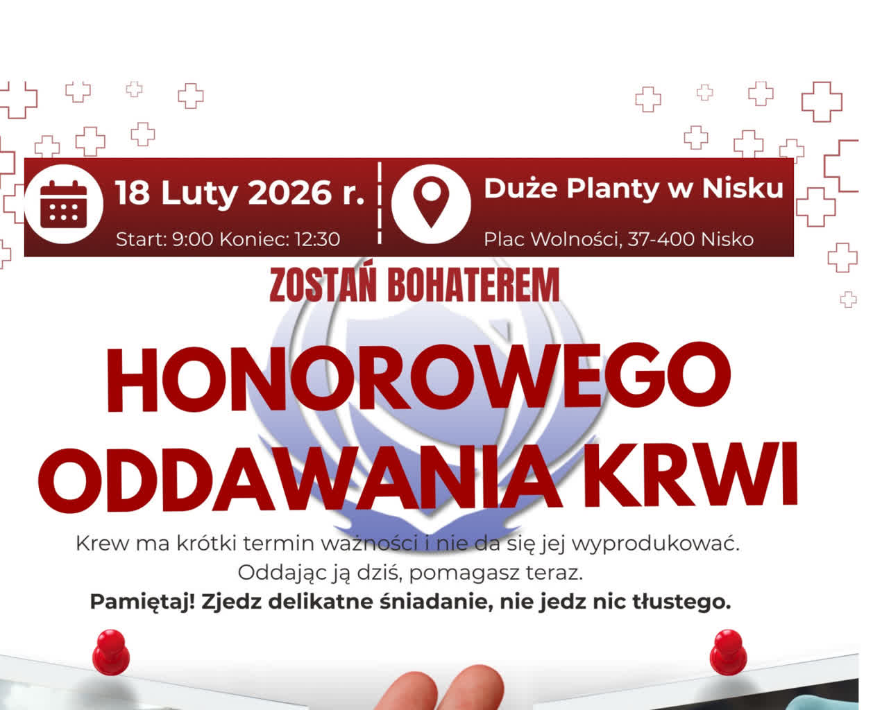 Podczas akcji 18 lutego na plantach w Nisku krwiobus będzie czekał na chętnych do podzielenia się cennym darem w godzinach od 9:00 do 12:30.