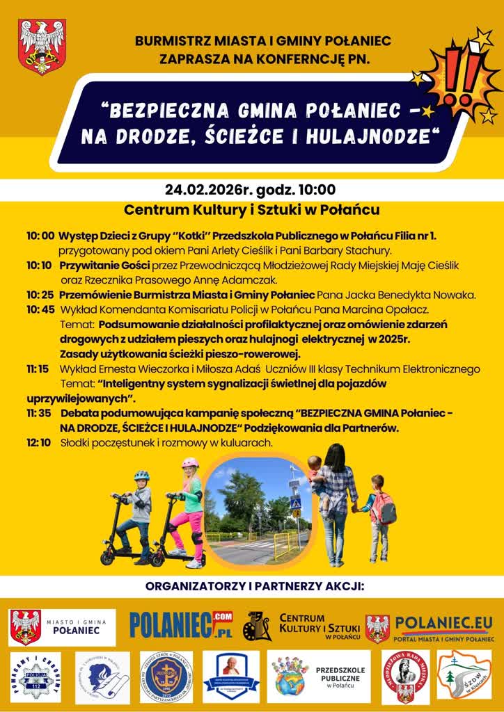 „Bezpieczna gmina Połaniec na ścieżce, drodze i hulajnodze” to tytuł konferencji, jaka odbędzie się w najbliższy wtorek (24 lutego) o godzinie 10:00 w Centrum Kultury i Sztuki w Połańcu.