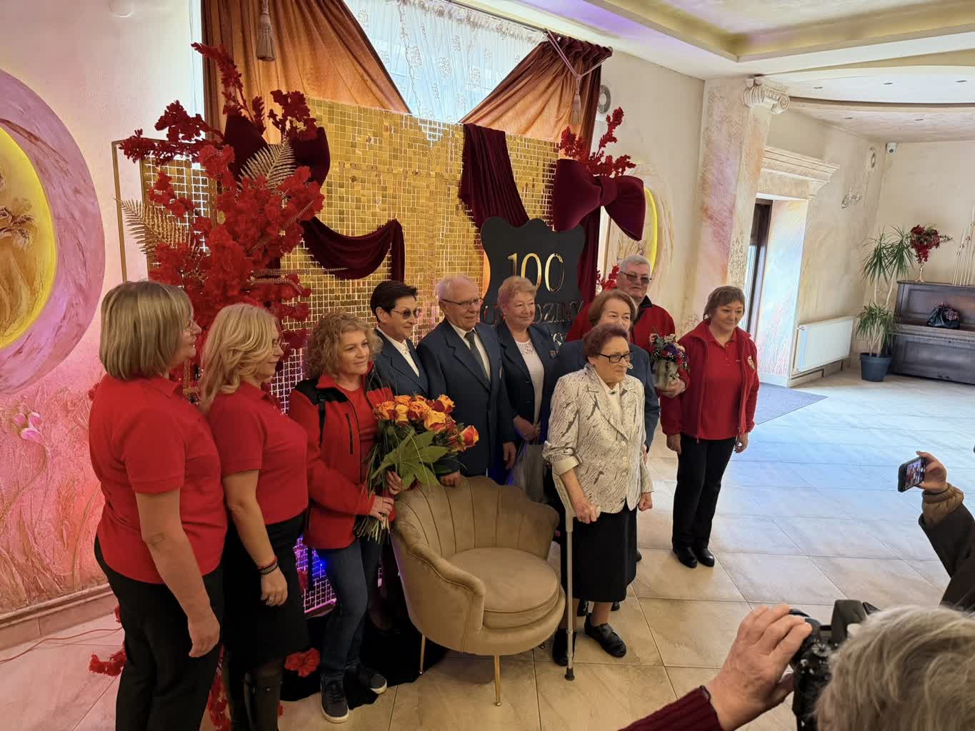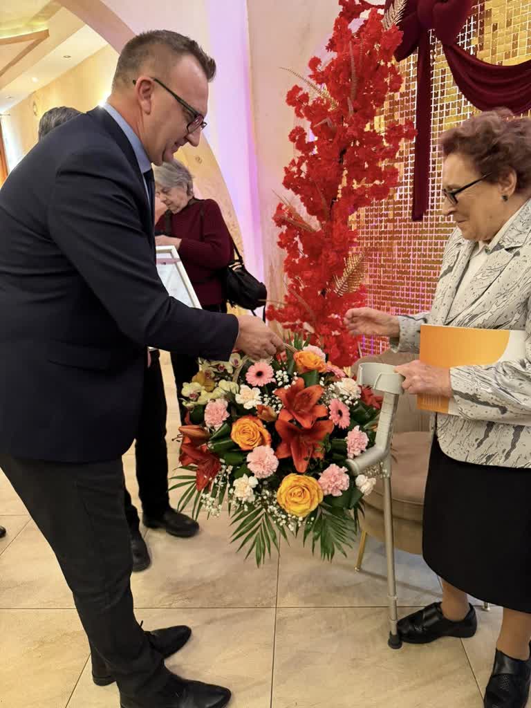 To niezwykłe wydarzenie zgromadziło liczną grupę rodziny, przyjaciół i znajomych. Gratulacje oraz najlepsze życzenia dostojnej jubilatce złożyli także starosta Marcin Piwnik i burmistrz Paweł Niedźwiedź.
