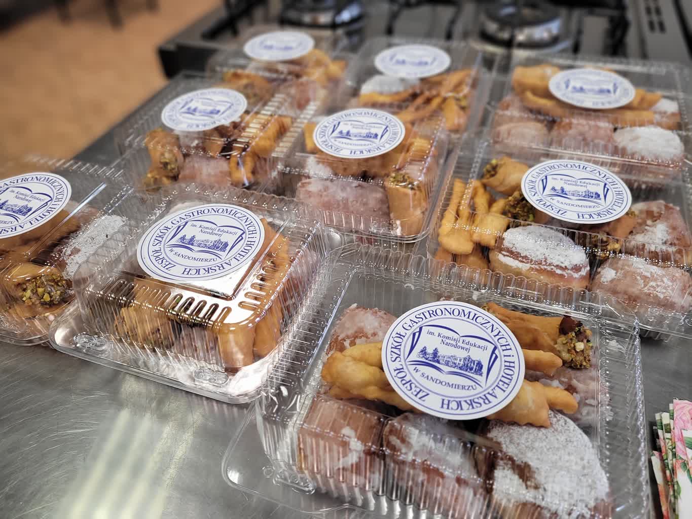„Pączki sandomierskie” powstawały podczas warsztatów kulinarnych zorganizowanych z okazji tłustego czwartku w Zespole Szkół Gastronomicznych i Hotelarskich w Sandomierzu. W warsztatach 'Słodka tradycja w każdym kęsie’ wzięli udział uczniowie szkół podstawowych oraz zaproszeni goście, między innymi starosta Marcin Piwnik i burmistrz Paweł Niedźwiedź.