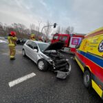Kierująca Volkswagenem Golfem 66 letnia kobieta, jadąc od ulicy Kwiatkowskiego na skrzyżowaniu z ul. Zawichojską wykonała manewr skrętu w lewo, wymuszając pierwszeństwo na prawidłowo jadącym Audi kierowanym przez 38-letniego mężczyznę i doprowadziła do zderzenia. Oboje zostali zabrani do szpitala w Sandomierzu. Byli trzeźwi.