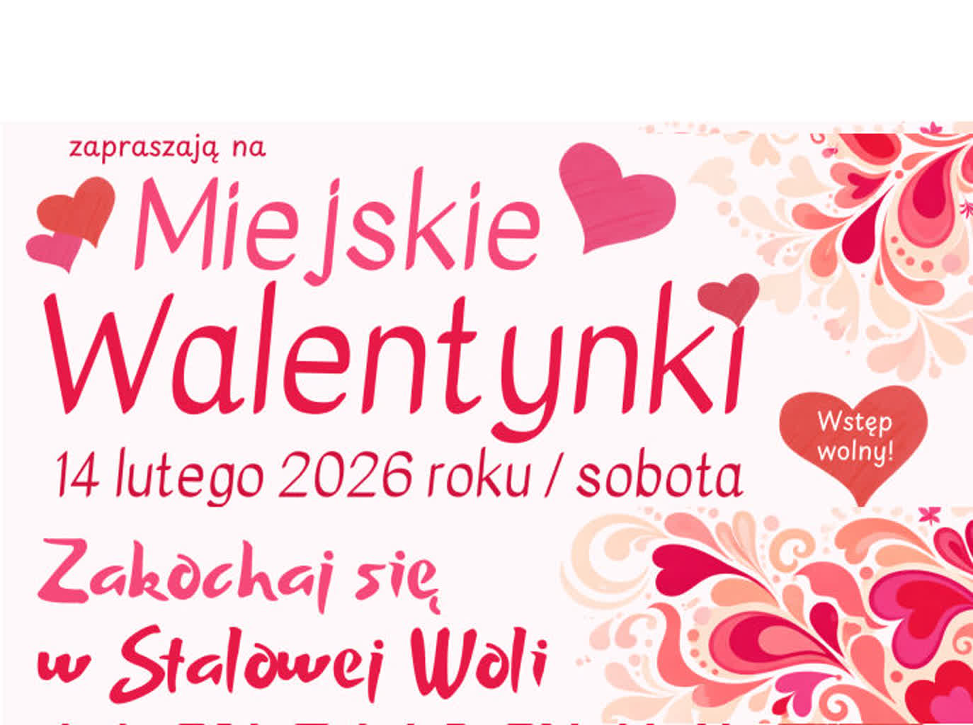 Zakochaj się w Stalowej Woli – pod takim hasłem 14 lutego odbędą się w Rozwadowie Miejskie Walentynki. Miasto zachęca do udziału w wyjątkowym, pełnym ciepła i romantycznej atmosfery wydarzeniu na rozwadowskim rynku.