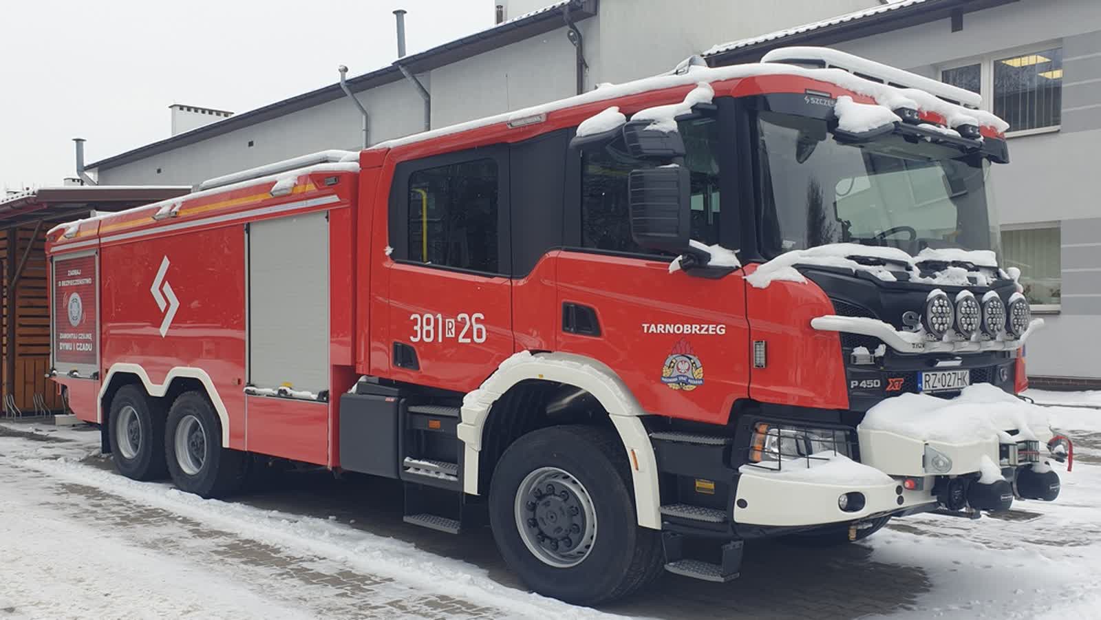 Strażacy z Tarnobrzega mają nowy sprzęt. Do Komendy Miejskiej Państwowej Straży Pożarnej w Tarnobrzegu trafił ciężki samochód ratowniczo-gaśniczy Scania z napędem uterenowionym 6 na 6. To obecnie największy pojazd, którym dysponują strażacy w mieście i całym powiecie tarnobrzeskim.