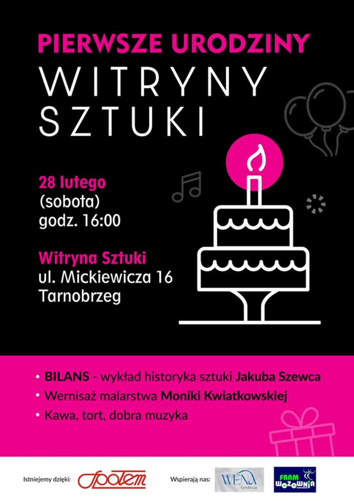 W sobotę, 28 lutego o godzinie 16:00 w Witrynie Sztuki w Tarnobrzegu, przy ulicy Mickiewicza 16 odbędą się pierwsze urodziny tego miejsca. Wstęp na wydarzenie jest bezpłatny.