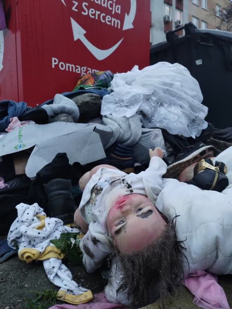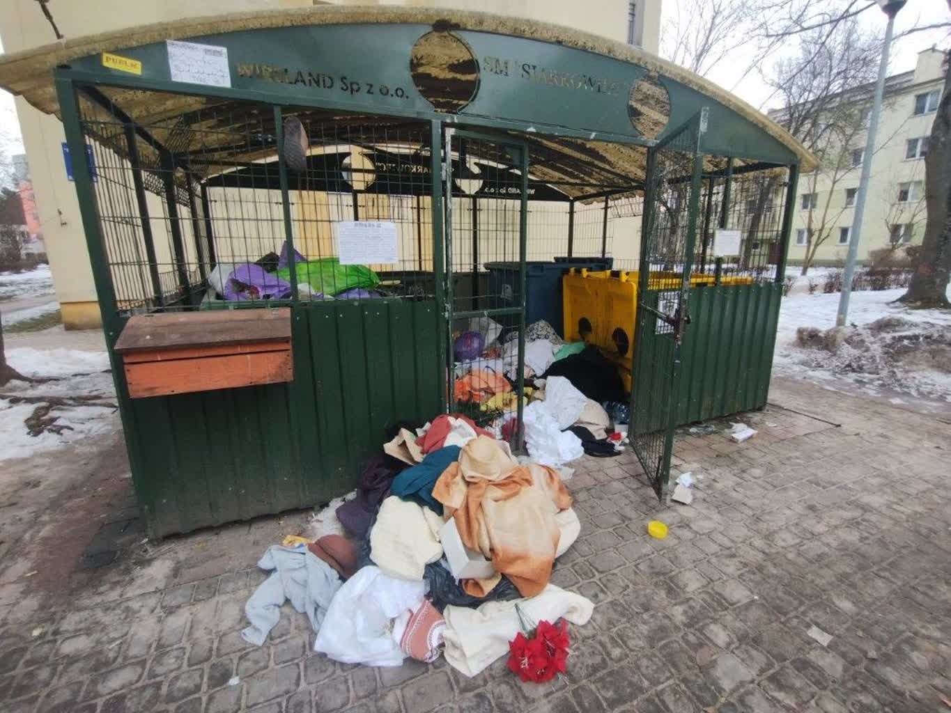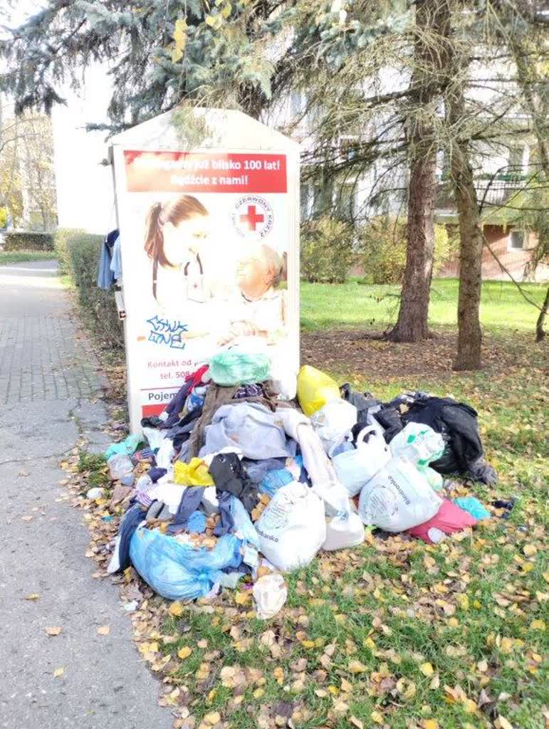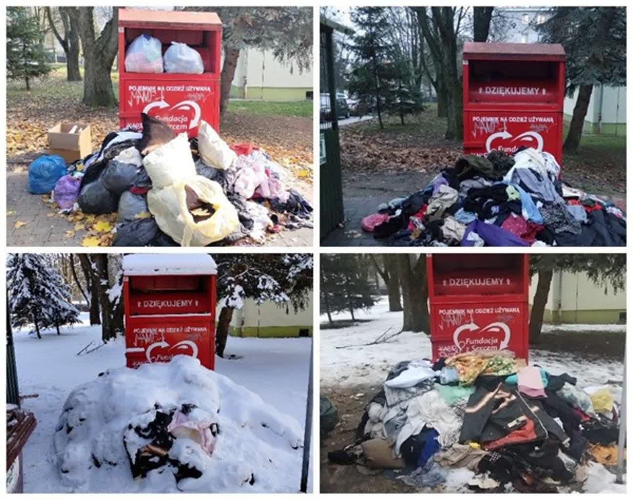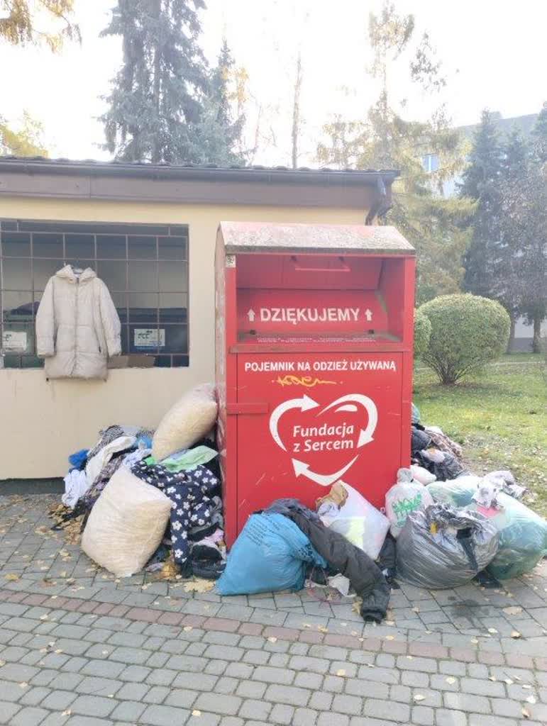 Tymczasem w Tarnobrzegu w pobliżu wielu altan śmietnikowych piętrzą się stosy śmieci tekstylnych. Widok hałd zużytej odzieży daleki jest od estetyki.