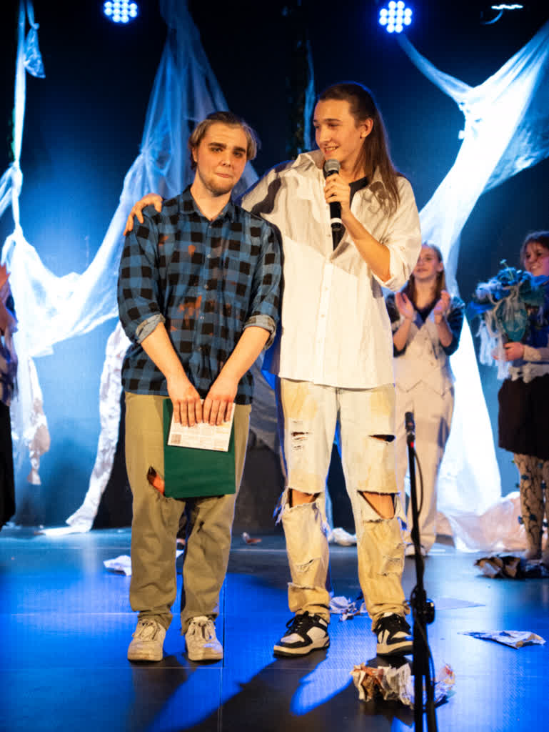 Spektakl od pierwszych minut trzymał publiczność w skupieniu – atmosfera bywała mroczna, momentami wręcz niepokojąca, a wydarzenia na scenie zmieniały się dynamicznie, budując silne emocje wśród widzów. Była to historia opowiedziana z ogromną energią i zaangażowaniem młodych aktorów.