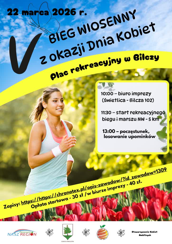 V Bieg Wiosenny z okazji Dnia Kobiet w gminie Obrazów odbędzie się w najbliższą niedzielę (22 marca) w Bilczy. Wydarzenie obejmuje bieg oraz marsz nordic walking na dystansie 5 km.