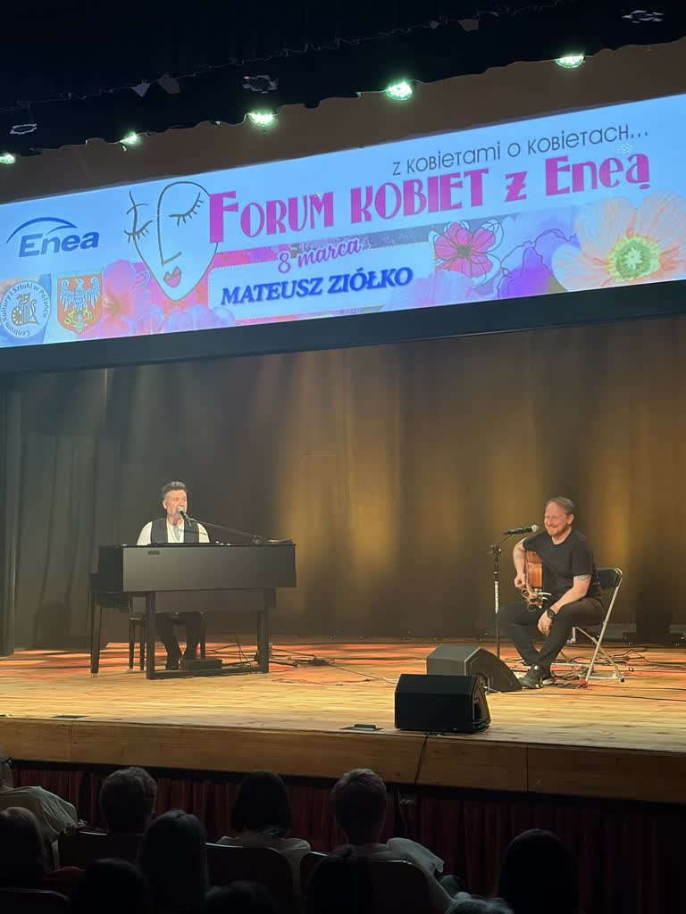 Wieczorem, 8 marca sala widowiskowa Centrum Kultury i Sztuki w Połańcu po raz kolejny wypełniła się do ostatniego miejsca. Tym razem publiczność spotkała się na koncercie Mateusza Ziółko, który pierwszy raz miał okazję wystąpić w Połańcu. Jego koncert był zwieńczeniem trzydniowego, niezwykle ciekawego Forum Kobiet z Eneą „Z kobietami o kobietach”.