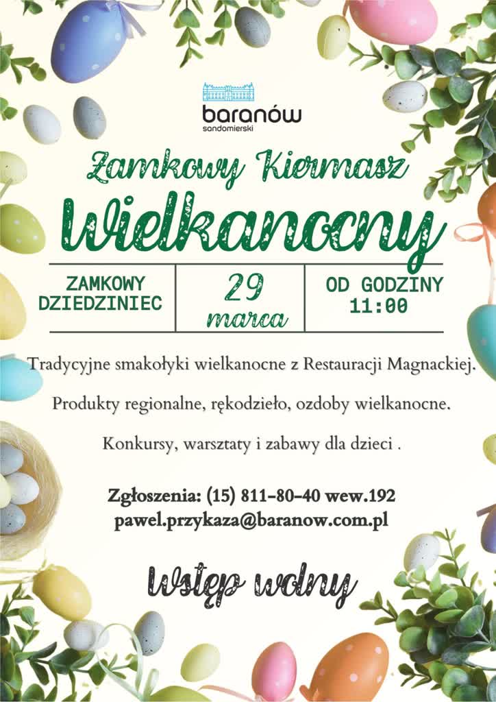 Kiermasz Wielkanocny organizuje u siebie także Zamek w Baranowie Sandomierskim. W najbliższą niedzielę od godziny 11 wzdłuż zamkowego dziedzińca ustawione będą stoiska na których znaleźć będzie można regionalne produkty, rękodzieło, ozdoby wielkanocne oraz świąteczne smakołyki.