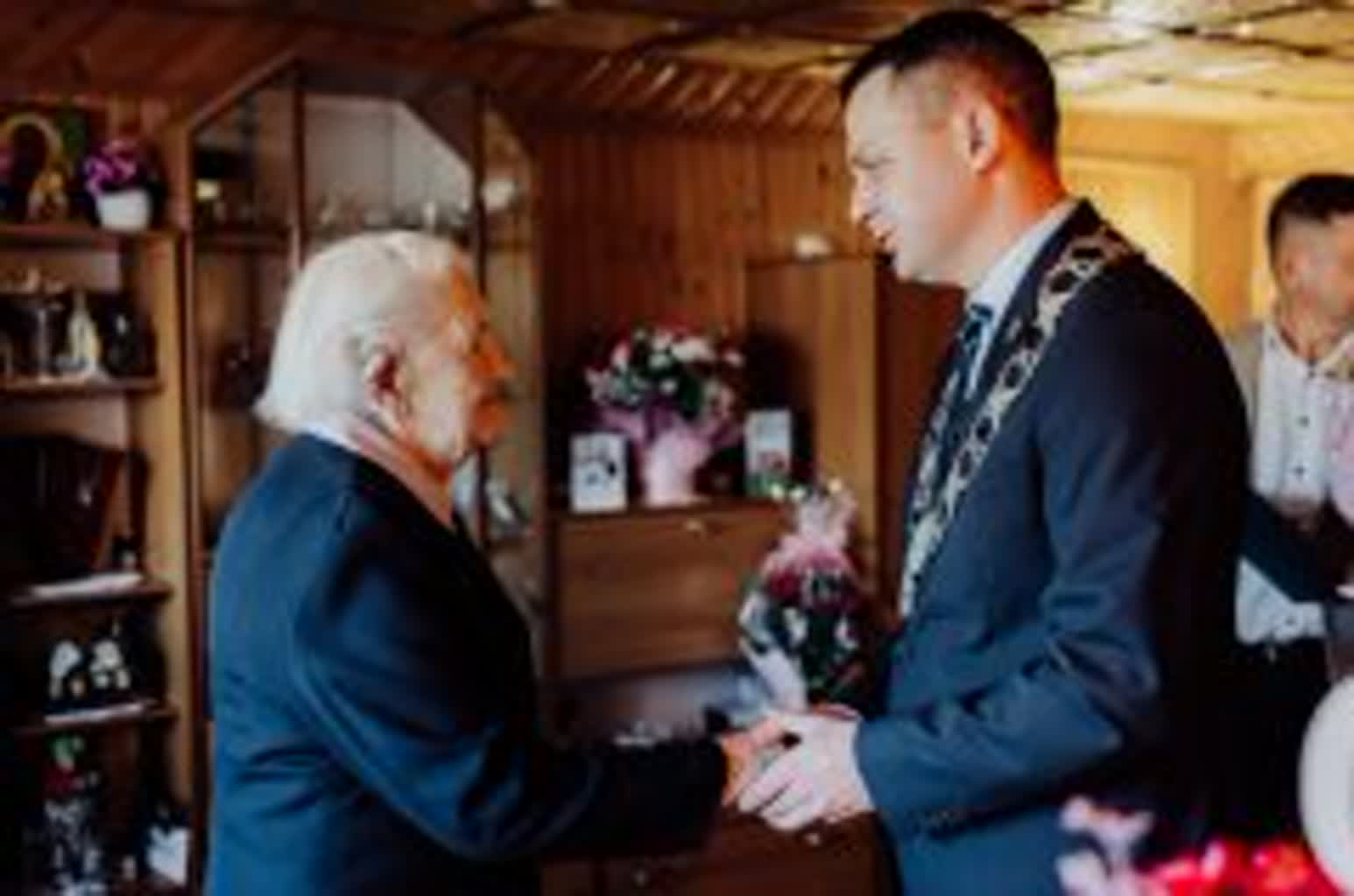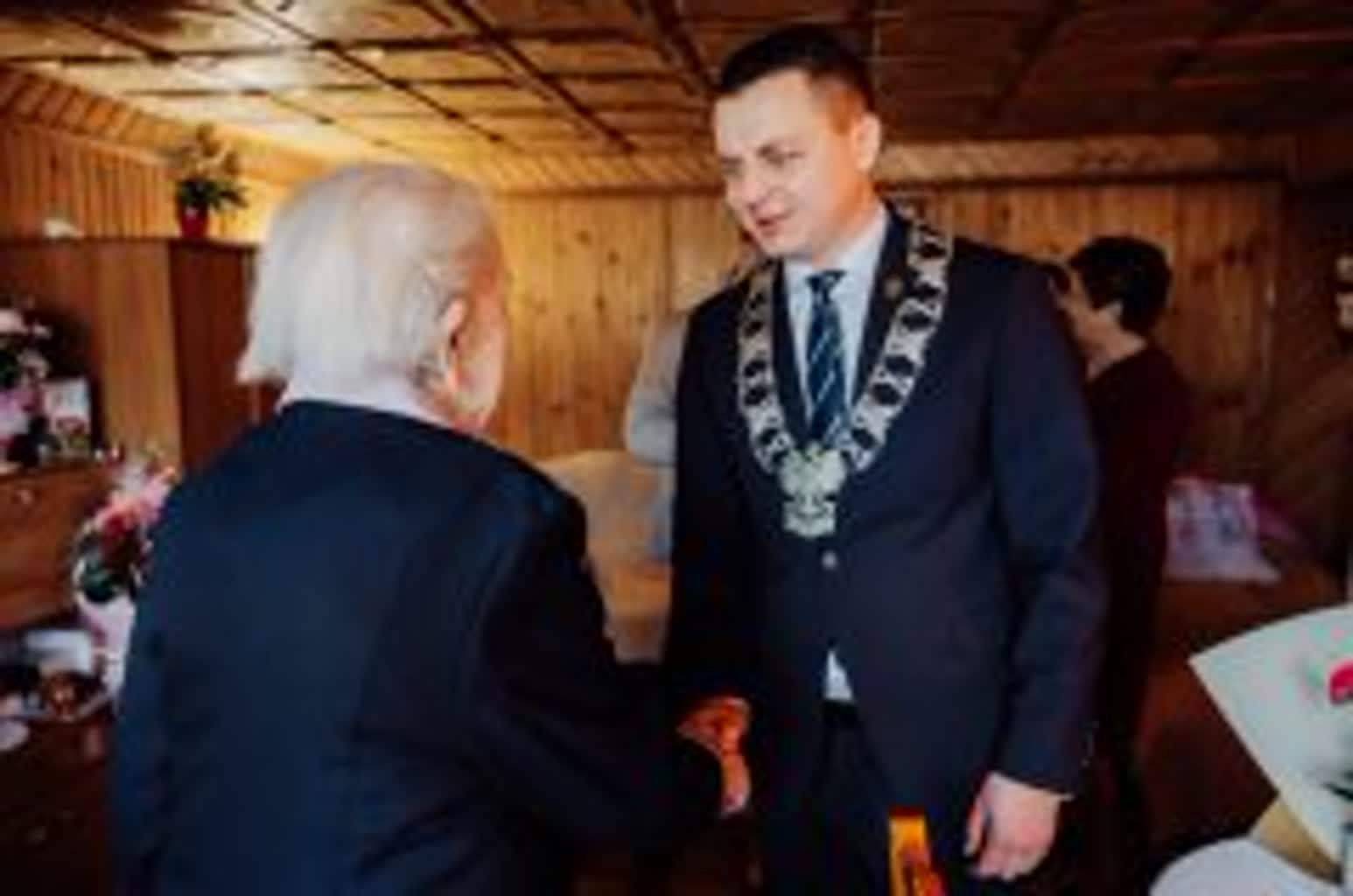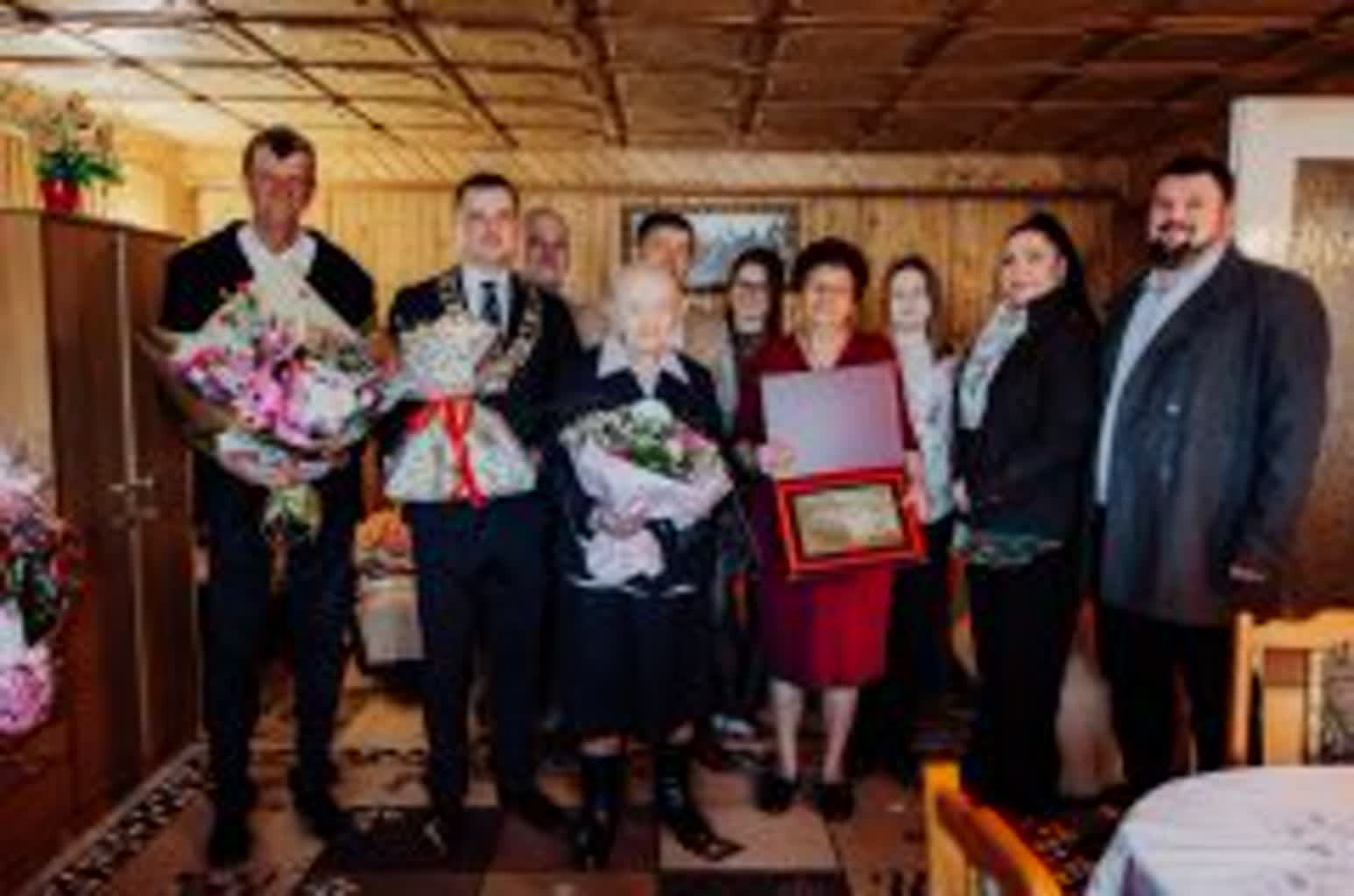 W tej wyjątkowej chwili jubilatce towarzyszyła rodzina oraz przedstawiciele władz samorządowych. Życzenia, kwiaty, upominek oraz pamiątkowy grawerton wręczył wójt gminy Samborzec Adrian Wołos:
