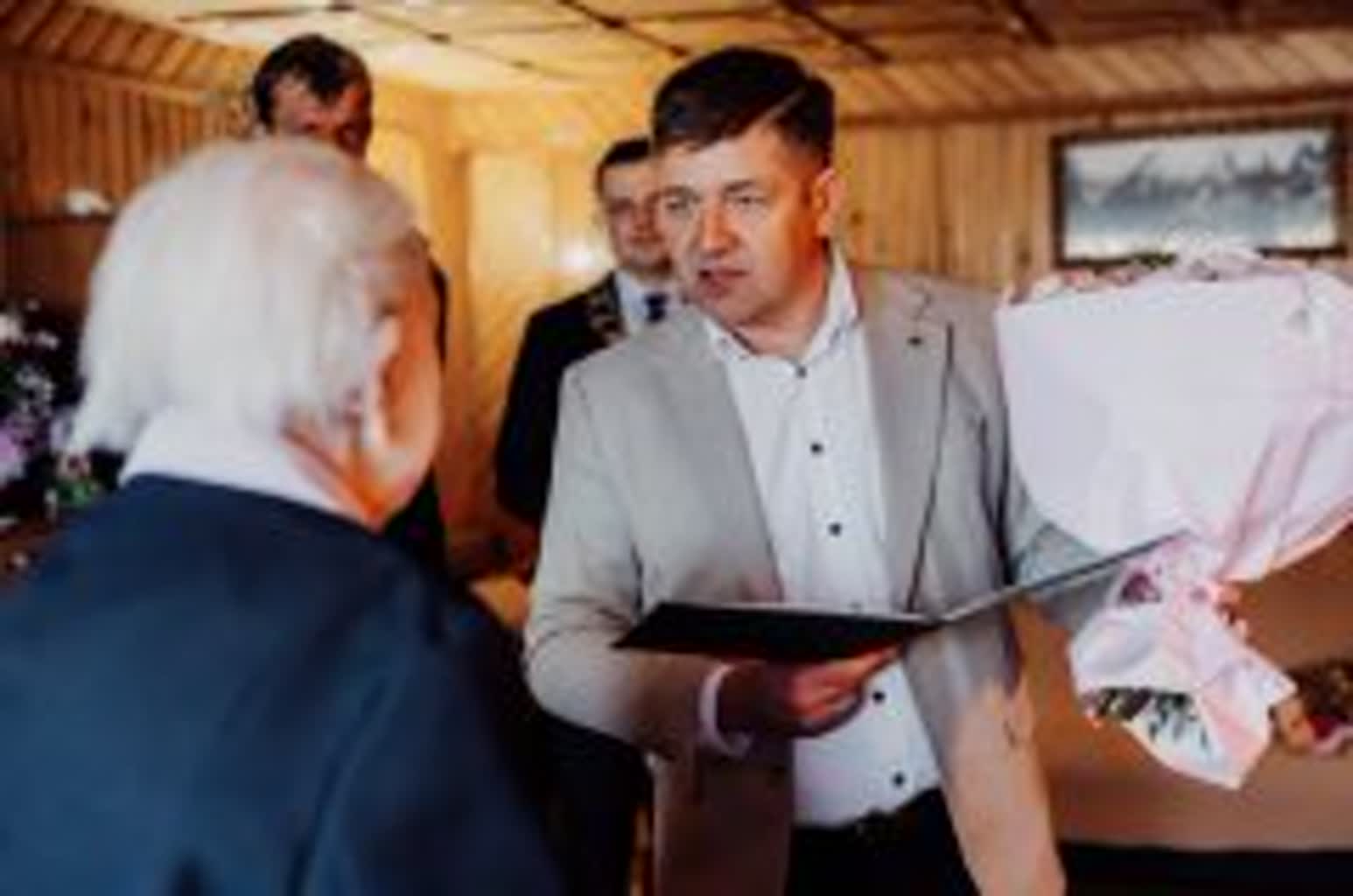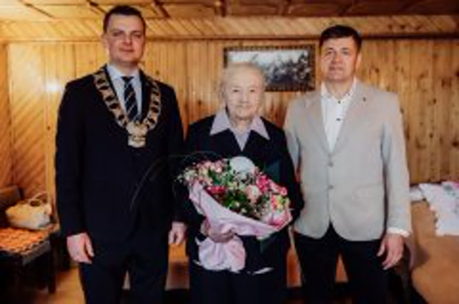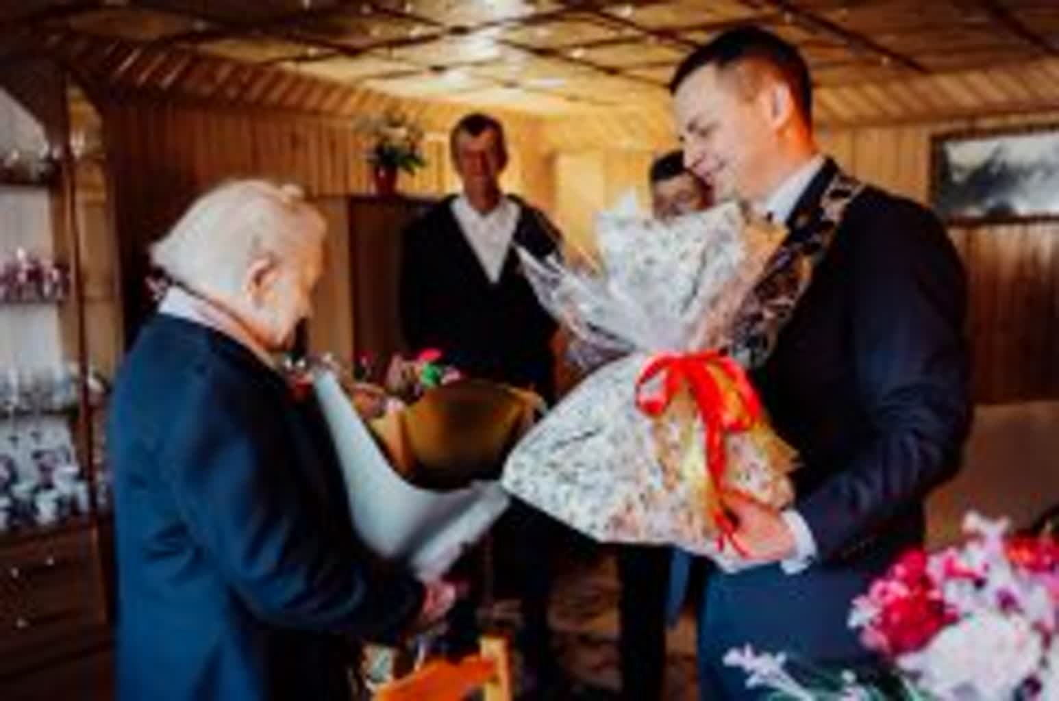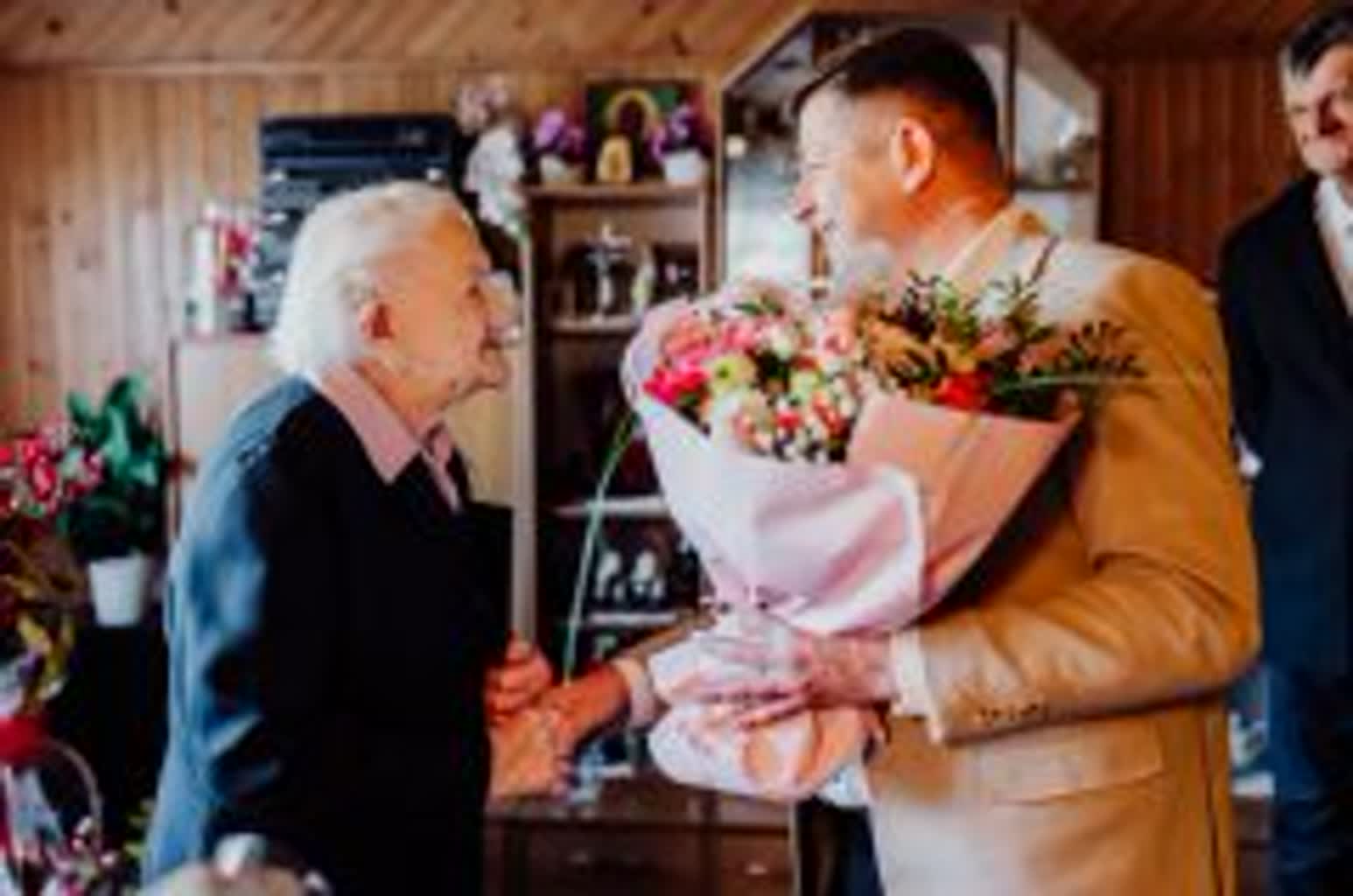 W tej wyjątkowej chwili jubilatce towarzyszyła rodzina oraz przedstawiciele władz samorządowych. Życzenia, kwiaty, upominek oraz pamiątkowy grawerton wręczył wójt gminy Samborzec Adrian Wołos: