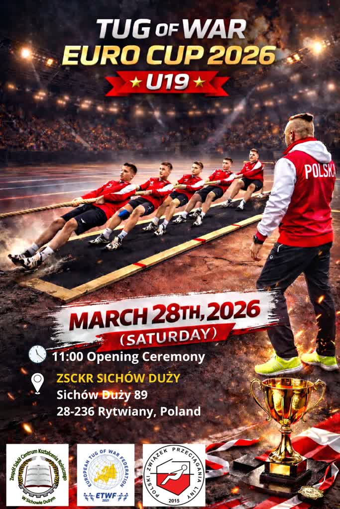 Już dziś w Sichowie Dużym w gminie Rytwiany wielkie sportowe emocje. O godzinie 11:00 w Centrum Metodyczno-Treningowym przeciągania liny rozpocznie się ceremonia otwarcia Pucharu Europy U19 w przeciąganiu liny – Tug of War Euro Cup 2026. W zawodach wezmą udział najlepsze młodzieżowe drużyny z całej Europy, które zmierzą się w walce o prestiżowy tytuł. Organizatorzy zapowiadają widowisko pełne siły, techniki i sportowej rywalizacji.