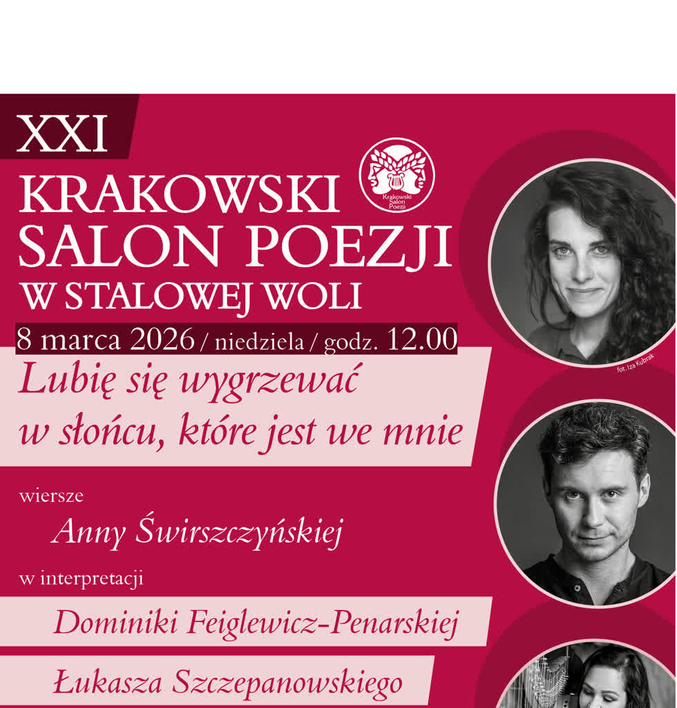 ’Lubię się wygrzewać w słońcu, które jest we mnie” – to tytuł Krakowskiego Salonu Poezji, który już 8 marca odbędzie się w Stalowej Woli. Tym razem, na Dzień Kobiet, wybrzmią wiersze Anny Świrszczyńskiej.