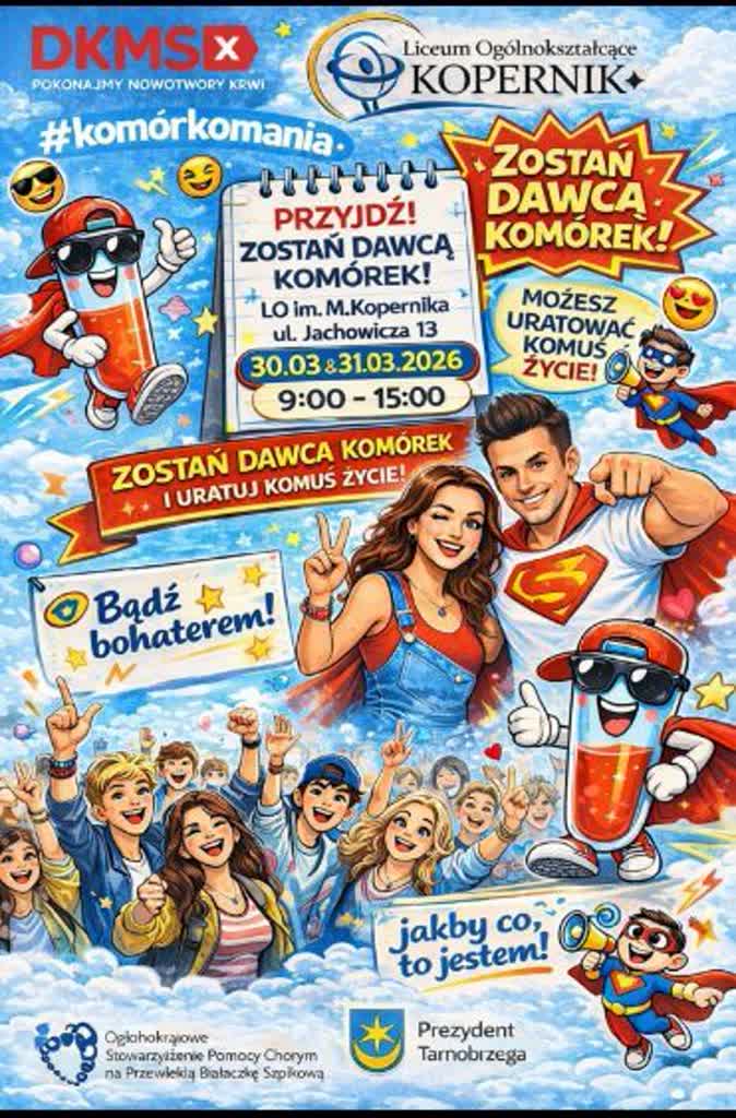 W Tarnobrzegu odbędzie się akcja „Komórkomania”, której celem jest rejestracja potencjalnych dawców szpiku. Wydarzenie zaplanowano na najbliższe poniedziałek i wtorek (30 i 31 marca) w godzinach od 9:00 do 15:00 w Liceum Ogólnokształcącym imienia Mikołaja Kopernika przy ulicy Jachowicza 13.