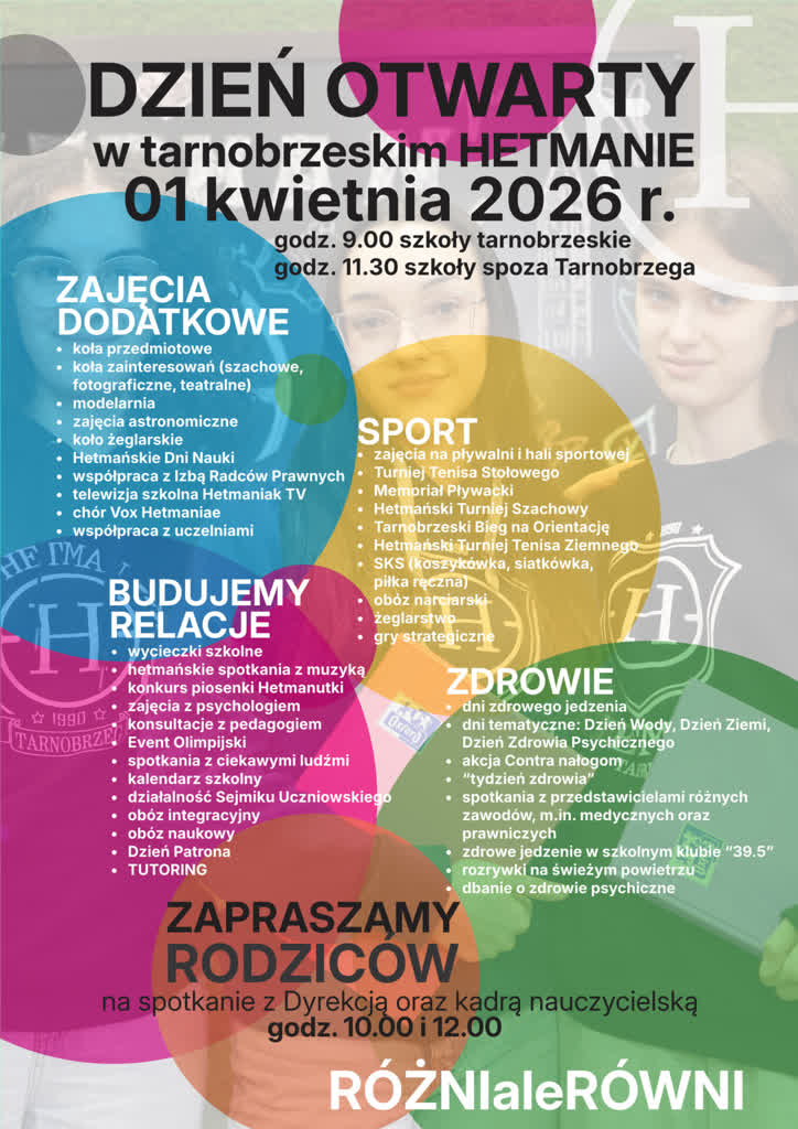 I Społeczne Liceum Ogólnokształcące imienia Hetmana Jana Tarnowskiego w Tarnobrzegu zaprasza na dzień otwarty, który odbędzie się w środę, 1 kwietnia.