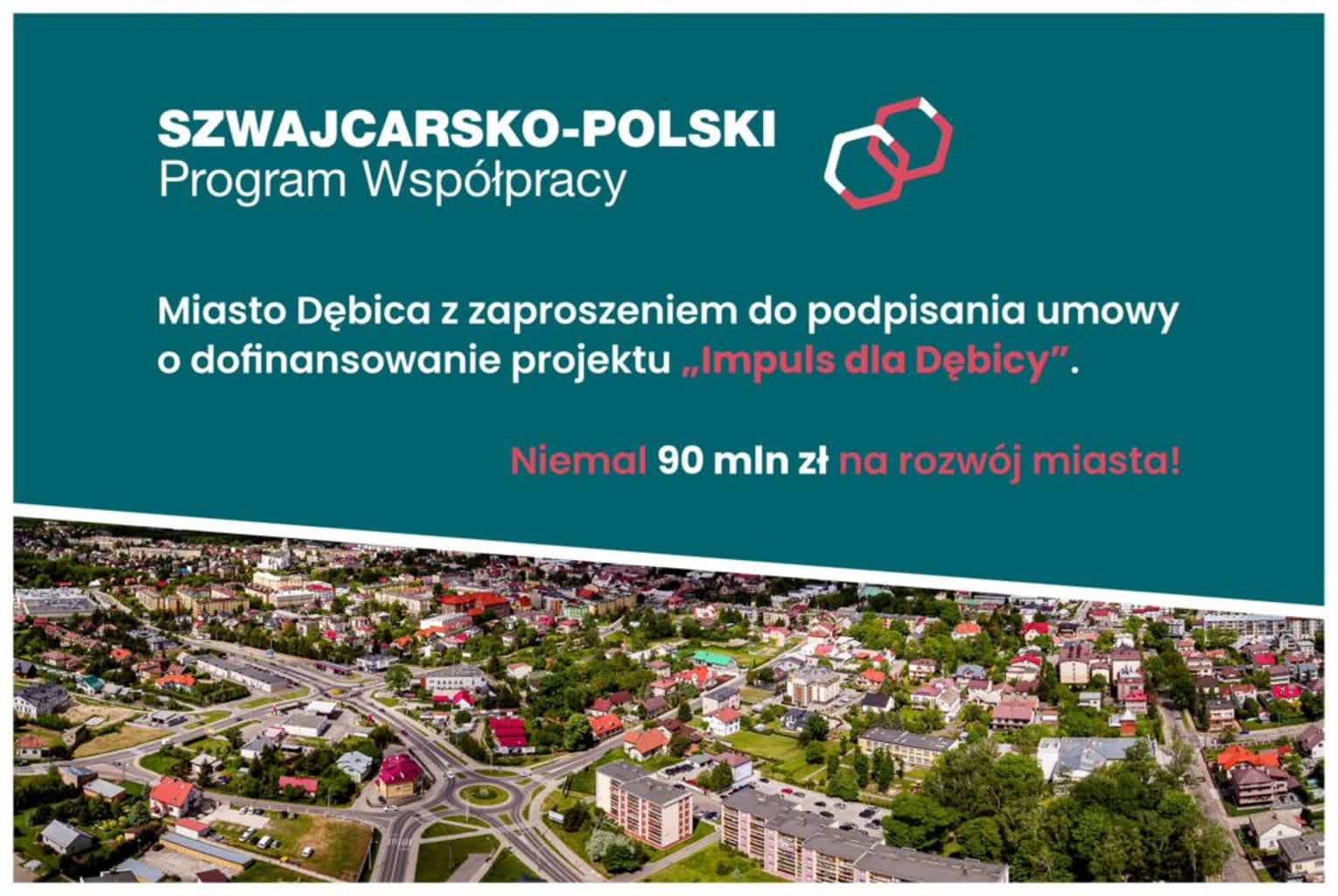 To największe dofinansowanie dla Dębicy w historii miasta. Burmistrz Mateusz Kutrzeba podpisał w Tarnowie umowę na realizację projektu „Impuls dla Dębicy”. W ramach Polsko-Szwajcarskiego Programu Rozwoju Miast do Dębicy trafi 80 mln zł. To historyczna chwila dla miasta Dębicy podkreśla jego włodarz, Mateusz Kutrzeba.